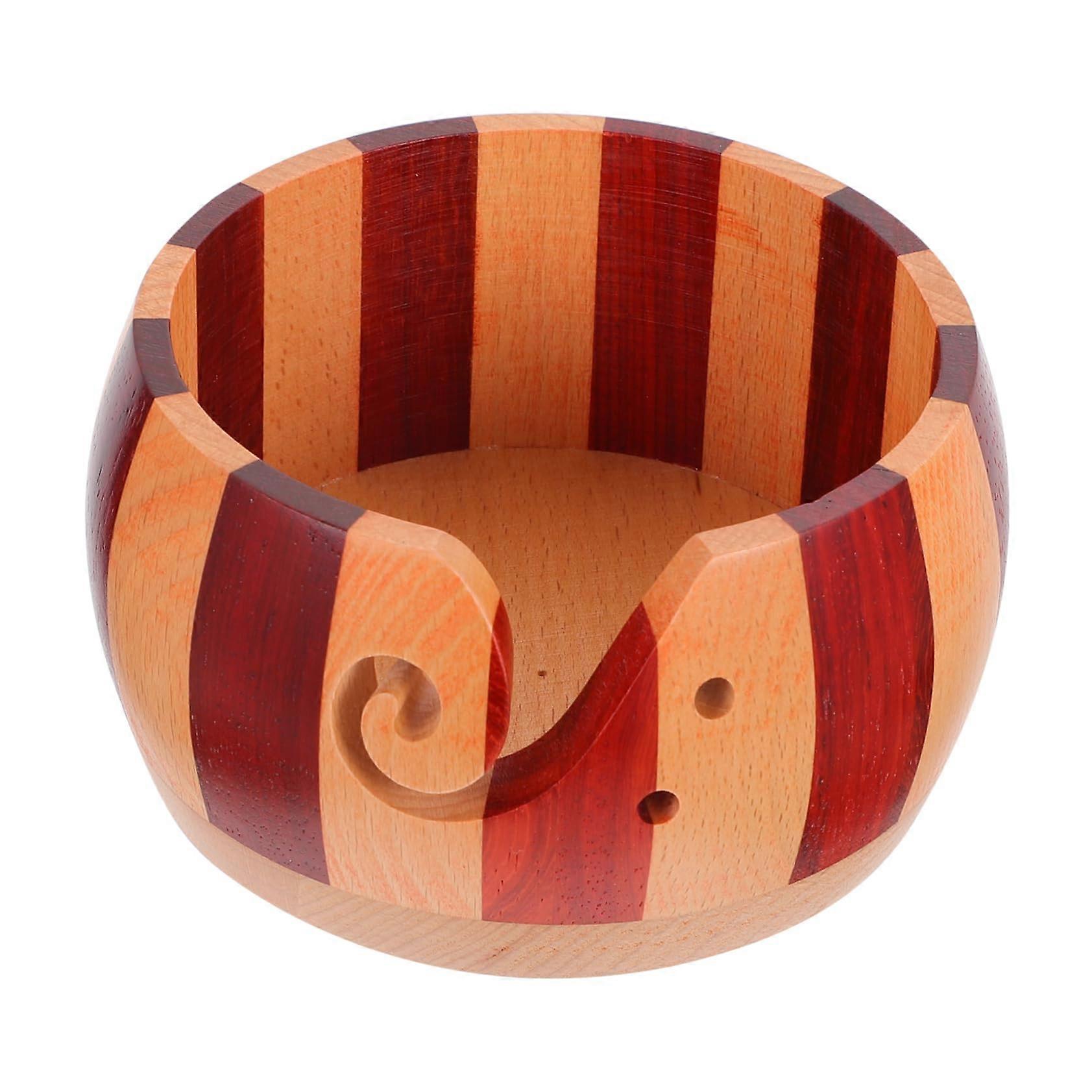 Wooden Yarn Bowl for Knitting and Crochet with Tangle Side Curl Guide