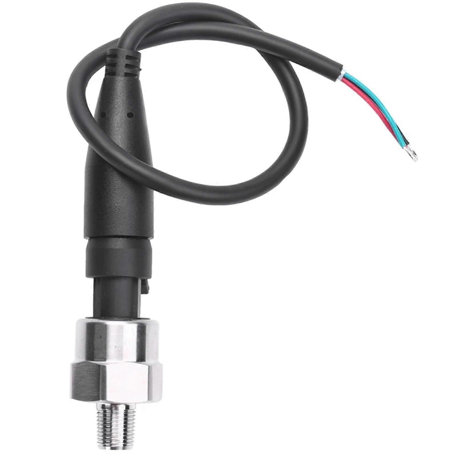 Key benefits Precise, easytoread voltage output for control systems and data logging. Robust metal construction and IP67 protection for reliable operation in wet and dusty environments. Wide operating temperature and overload capacity for demanding industrial and automotive applications. Standard 1/8 inch NPT thread and simple threewire connection for straightforward installation and compatibility. What this sensor does This pressure transducer converts pressure into a linear voltage signal that is easy to read by microcontrollers, PLCs, data recorders, and analog input modules. It provides a stable and accurate voltage proportional to pressure, allowing continuous monitoring and control. Performance and electrical specifications Output: 0.5 to 4.5 V linear voltage output 0 psi = 0.5 V 75 psi = 2.5 V 150 psi = 4.5 V Accuracy: +/0.5% FS Supply voltage: DC 5 V Wiring: Red = +5 V supply, Black = ground, Green = signal output Overload capacity: 2 to 4 times rated pressure Protection class: IP67 Environmental and mechanical data Pressure range: 150 psi Thread type: 1/8 inch NPT to improve conversion rates Working temperature: 40 to +120 C Compensation temperature: 0 to +80 C Material: metal Colour: Black and silver Practical advantages Linear 0.5 to 4.5 V output makes integration with analog input systems fast and predictable. accuracy and factory testing reduce calibration time and measurement uncertainty. IP67 rating and metal body provide durability in outdoor and industrial settings. Wide temperature range and elevated overload capacity support heavyduty use. Typical applications Automotive boost and fuel system pressure monitoring Air compressors, pumps, and pneumatic system pressure feedback Industrial hydraulic systems and process control where an analog voltage signal is required Package contents and notes Package contains 1 Pressure Transducer with cable Only the listed item is included Each product is professionally tested before leaving the factory Light and display differences may cause slight color variation between the photo and the real item Measurement allowed error is +/1 to 3 cm Please check your model number carefully to ensure compatibility with your equipment Other models are available on request from the manufacturer