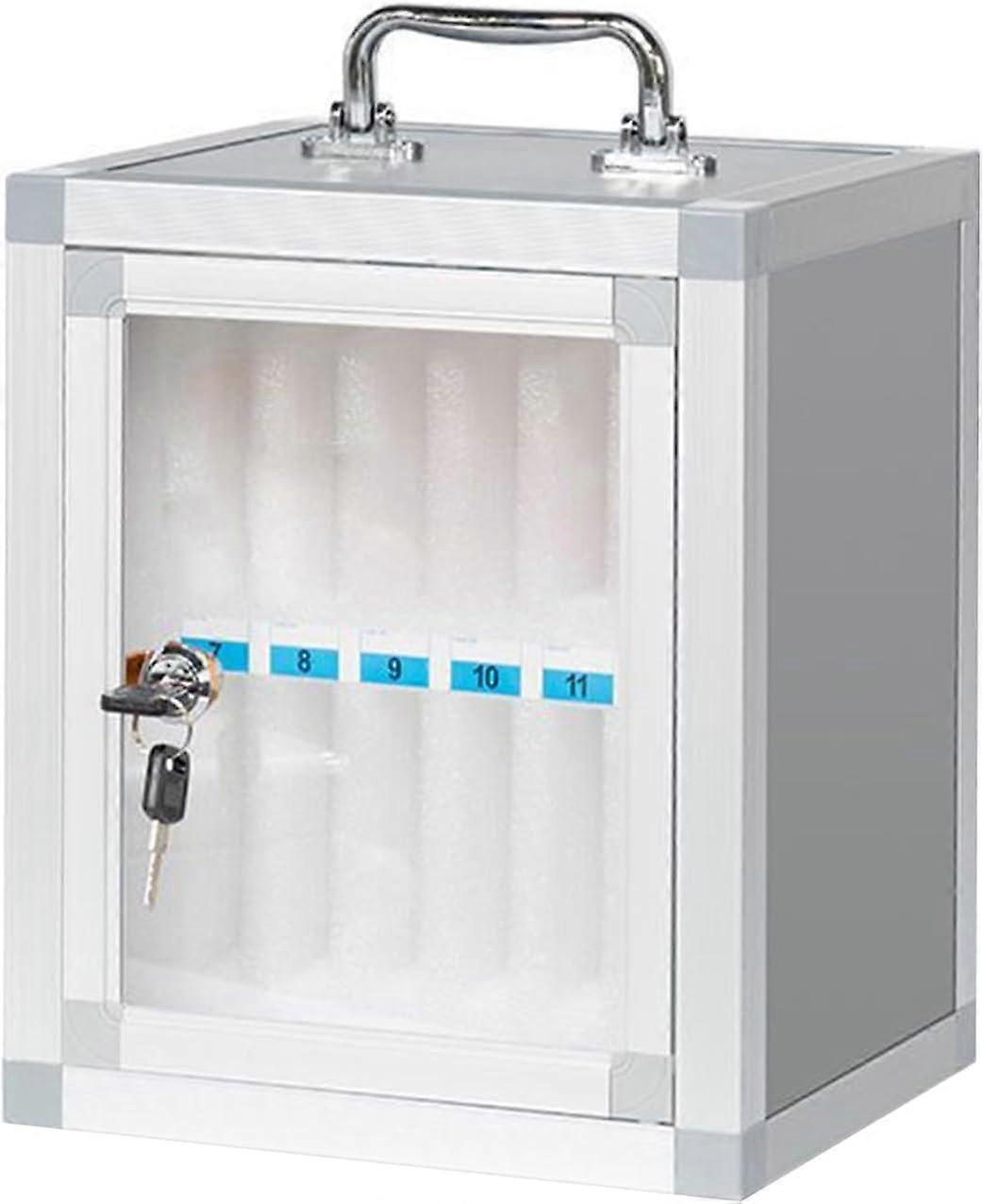 Silver 12Slot Mobile Phone Organizer for Classroom and Corporate Use A durable, practical storage solution for organizing multiple mobile phones in classrooms, conference rooms, offices, and workshops. Constructed from aluminum alloy with a sturdy design that resists deformation and holds devices securely. Can be placed on a table or mounted on a wall to fit different spaces and workflows. Key benefits Secure and robust construction: Made from aluminum alloy with a thick, stable structure to withstand daily use and accidental impacts. Reduces distraction and clutter: Keeps phones stored and out of sight during classes, meetings, or service appointments to improve focus and . Flexible placement: Designed for tabletop use or wall mounting to adapt to available space and installation preferences. Clear capacity and sizing: Available in multiple capacities to suit different group sizes or room needs. Typical applications Classroom: Store students mobile phones during lessons to minimize distractions and support classroom management. Corporate conference room: Keep participant phones collected before meetings to maintain a professional environment and reduce interruptions. Mobile phone or service counter: Organize customer devices while they are being serviced, preventing mixups and keeping the workspace tidy. Product specifications Material: Aluminum alloy Color: Silver This listing: 12slot model overall dimensions 22.5 x 20 x 27 cm 8.8 x 7.8 x 10.6 in Other available capacities and dimensions: 24slot: 28.5 x 20 x 40 cm 11.2 x 7.8 x 15.7 in 32slot: 28.5 x 20 x 52 cm 10.8 x 7.8 x 20.4 in 48slot: 39.5 x 20 x 52.5 cm 15.5 x 7.8 x 20.6 in 60slot: 39.5 x 20 x 64 cm 15.5 x 7.8 x 25.1 in Usage and care Ensure the lock is installed correctly and maintained so it cannot be opened easily by unauthorized users. Place devices gently into each slot to avoid collisions or scratches. Regularly check the unit for stability and any loose fittings to maintain long term use. Aftersales support Aftersales assistance is available through the seller if any issues arise during use.