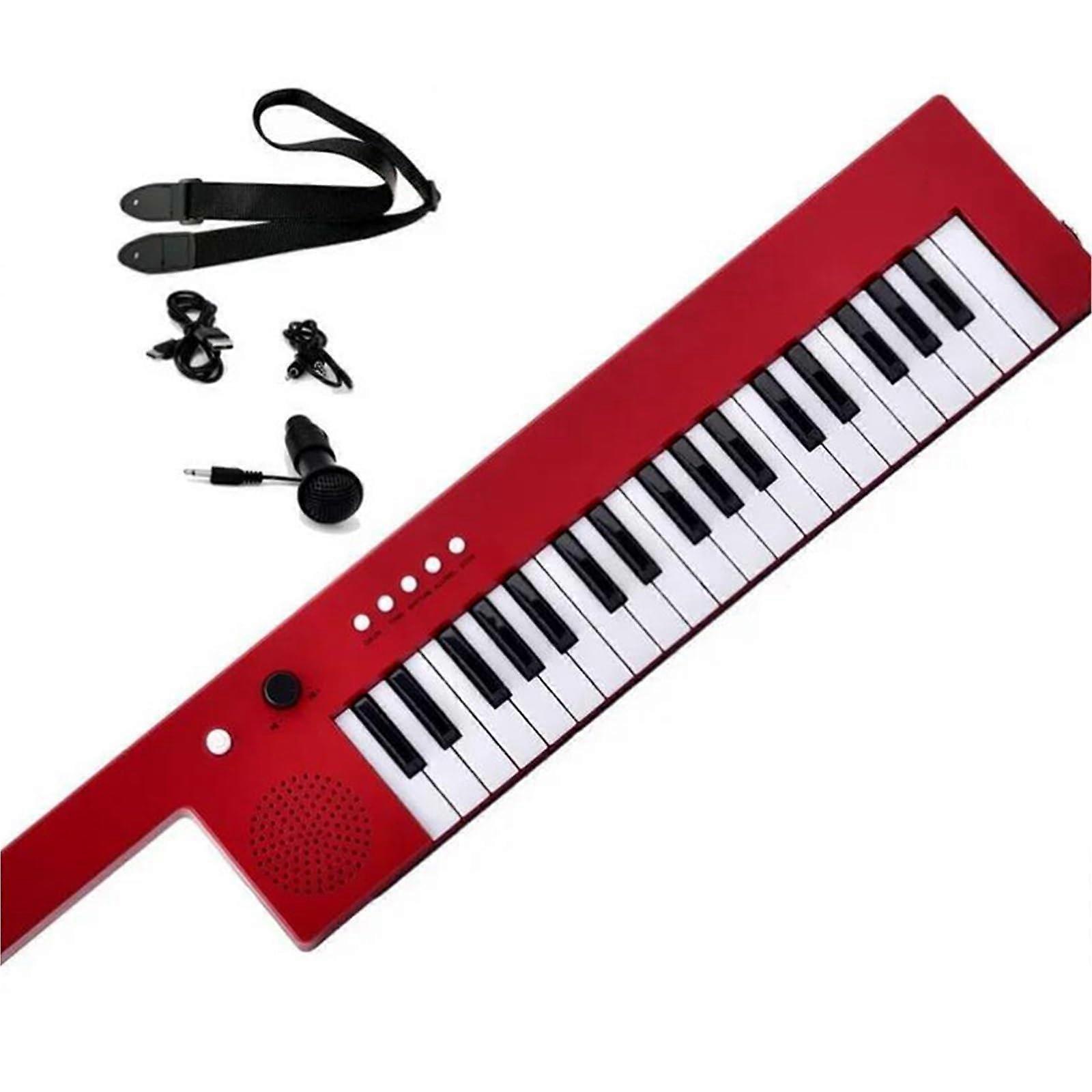 Electronic Keyboard 37 Keys Rechargeable Electric Piano with Microphone USB Red