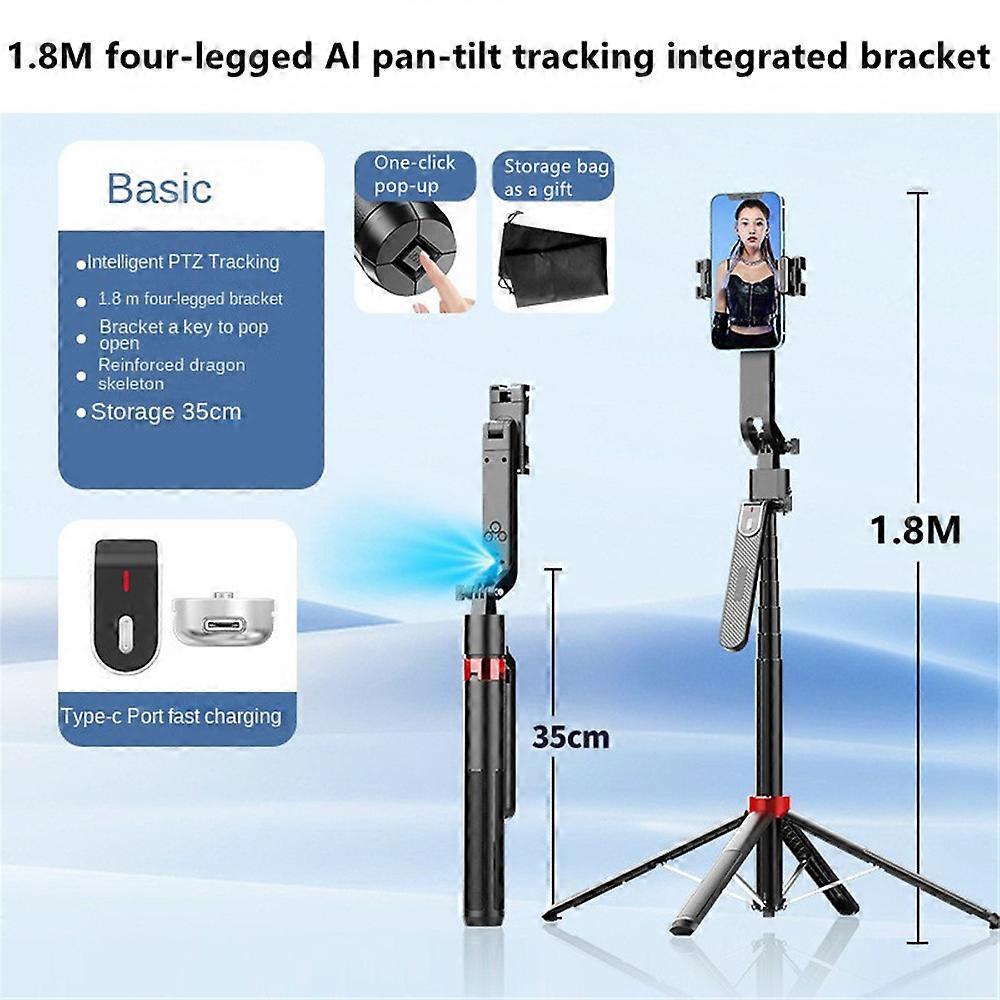 1.8M Selfie Tripod for Cell Phone 360°Auto-Rotation AI Tracking Shooting Quadrapod with Remote Control Mobile phone holder
