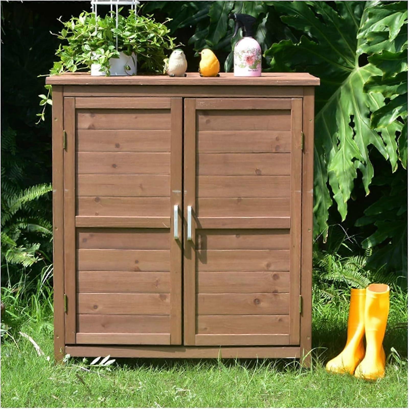 Wooden Outdoor Storage Shed with Weatherproof Asphalt Roof and Magnetic Double Doors for Garden and Yard