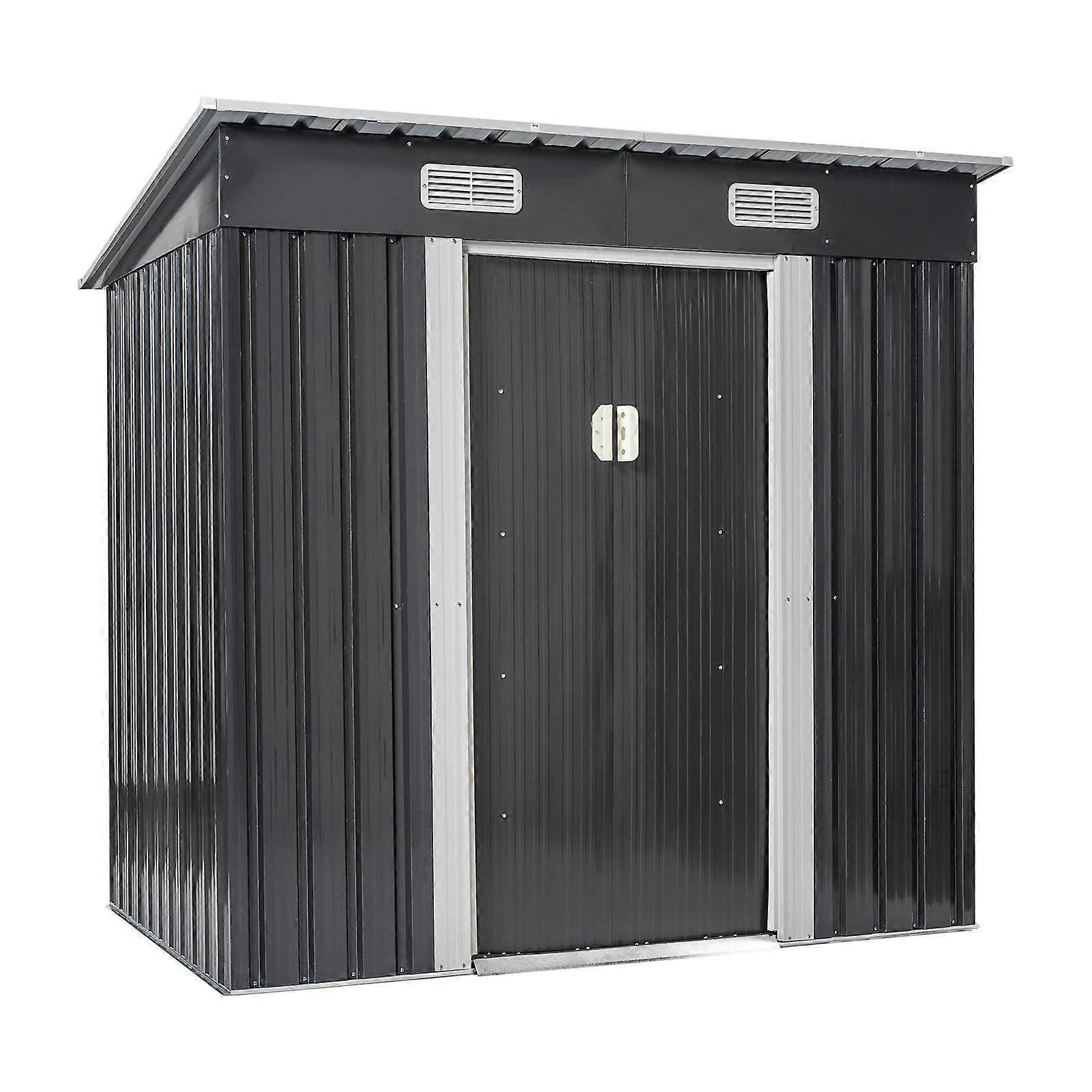 4x6 FT Outdoor Storage Shed RustResistant Metal Garden Shed with Sliding Doors Grey