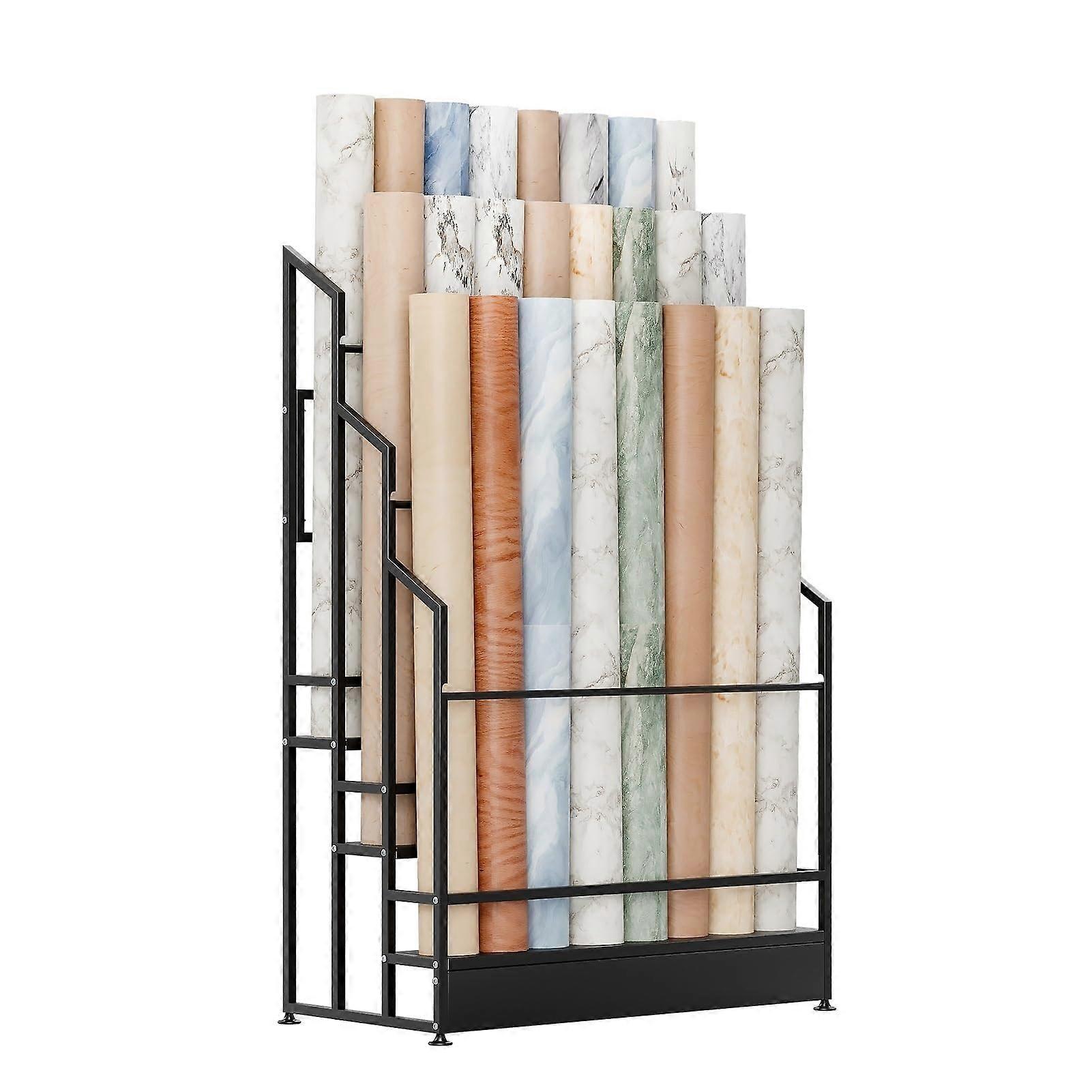 3 Tier Vinyl Roll Storage Rack, Heavy Duty Steel Fabric Display Stand with Adjustable Feet