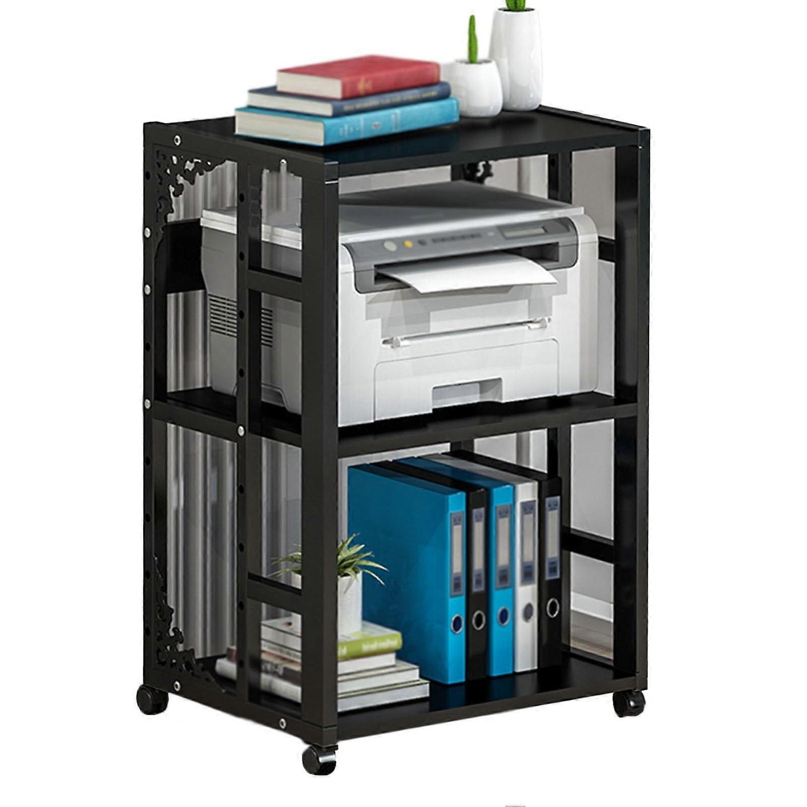 3 Tier AV Media Stand with Wheels, Metal Audio Rack, Open Storage, Black and Dark Walnut
