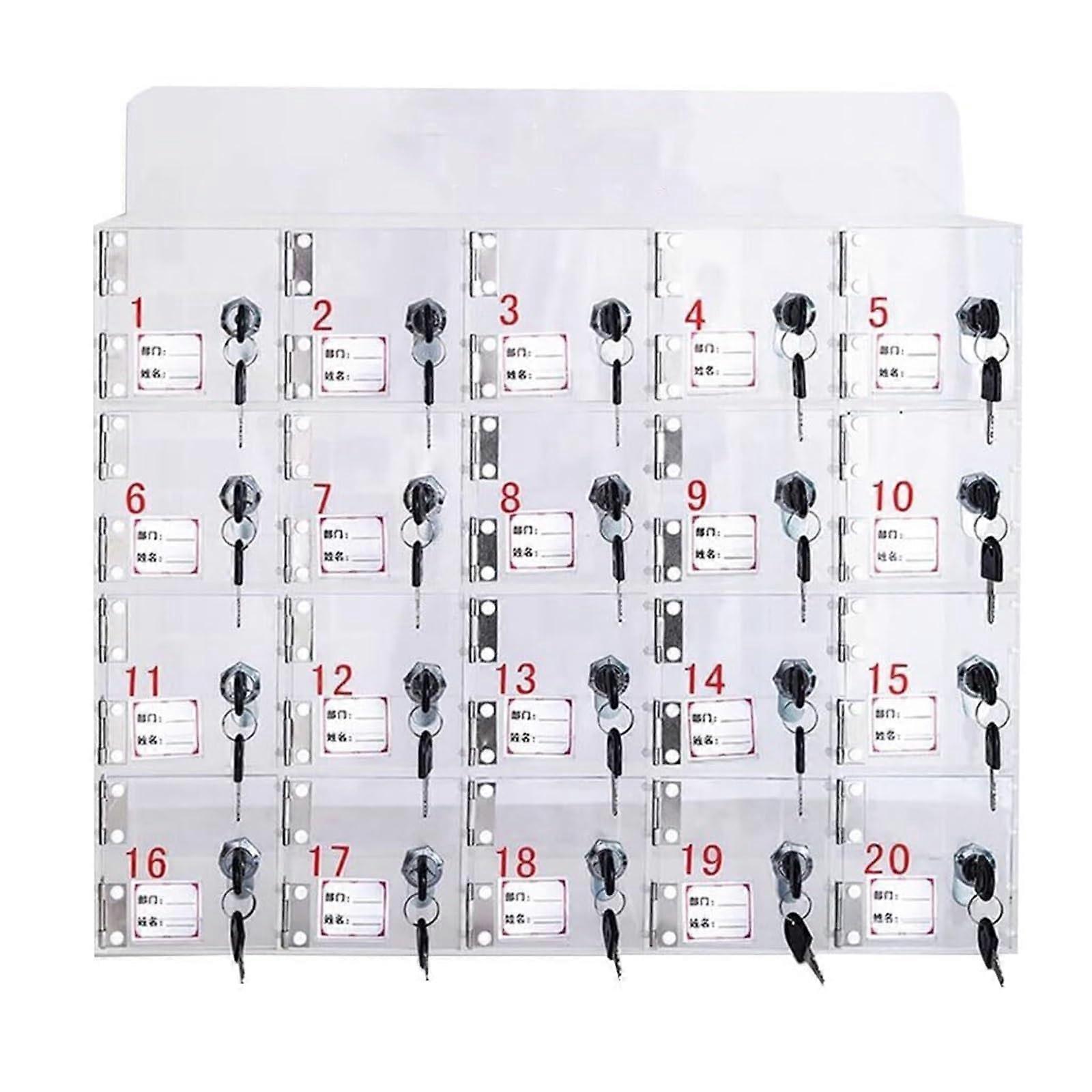 Transparent 20Slot Mobile Phone Storage Locker A clear, lockable storage cabinet designed to organize and secure up to 20 mobile phones and other small items. The transparent acrylic construction provides full visibility of contents, while individually numbered doors keep items separated and easy to identify. Suitable for wall mounting or tabletop use. Key benefits Secure and organized storage: Lockable doors and individual compartments prevent loss and unauthorized access while keeping devices neatly arranged. Visible and durable material: Transparent acrylic allows quick visual checks without opening compartments and resists everyday wear. Space efficient: Compact footprint works on a desk or mounted to a wall to save space and reduce clutter. Versatile compatibility: Holds most smartphones, small calculators, and similarsized items. Features Capacity: 20 slots Overall dimensions: 52 x 18 x 41 cm (20.4 x 7 x 16.1 in) Size of each door compartment: 10 x 10 x 18 cm Material: Acrylic Mounting options: Wall mount or desktop placement Locking system: Lockable compartments for added security Numbered design: Individual slot numbering for easy tracking and distribution Practical use scenarios Classroom management: Store student phones during lessons to minimize distractions and keep devices organized by student number. Office and meetings: Secure devices during meetings or focused work sessions to protect confidentiality and reduce interruptions. Retail and hospitality staff areas: Provide a secure place for employee phones and small items during shifts. Precautions Manual measurement may result in a 1 to 2 cm difference in dimensions. Color or appearance may vary slightly due to lighting and screen display. If you have any questions, please contact the seller through your channel for assistance.