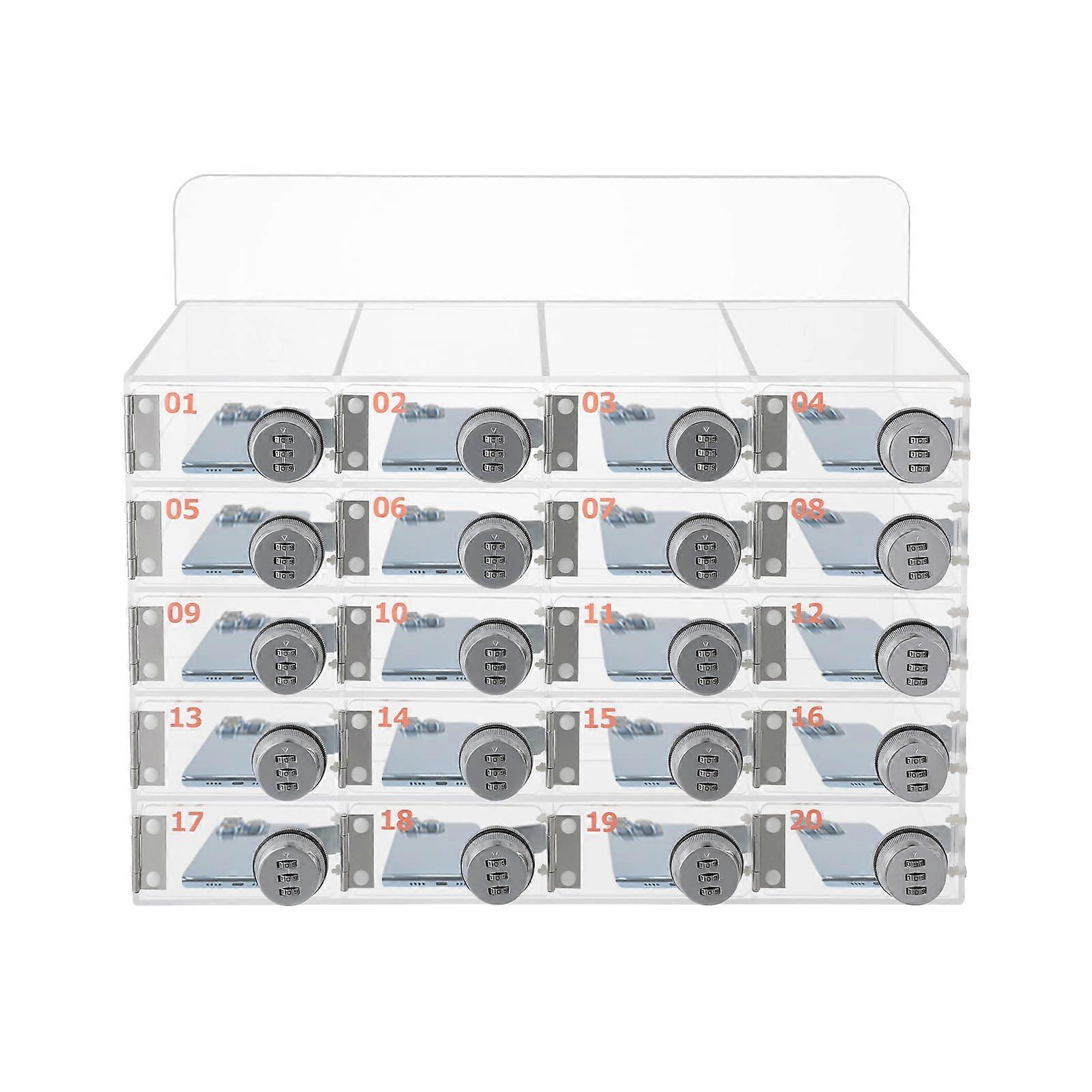 20Slot Wall Mounted Cell Phone Locker, Clear Acrylic Storage Cabinet with Combination Locks