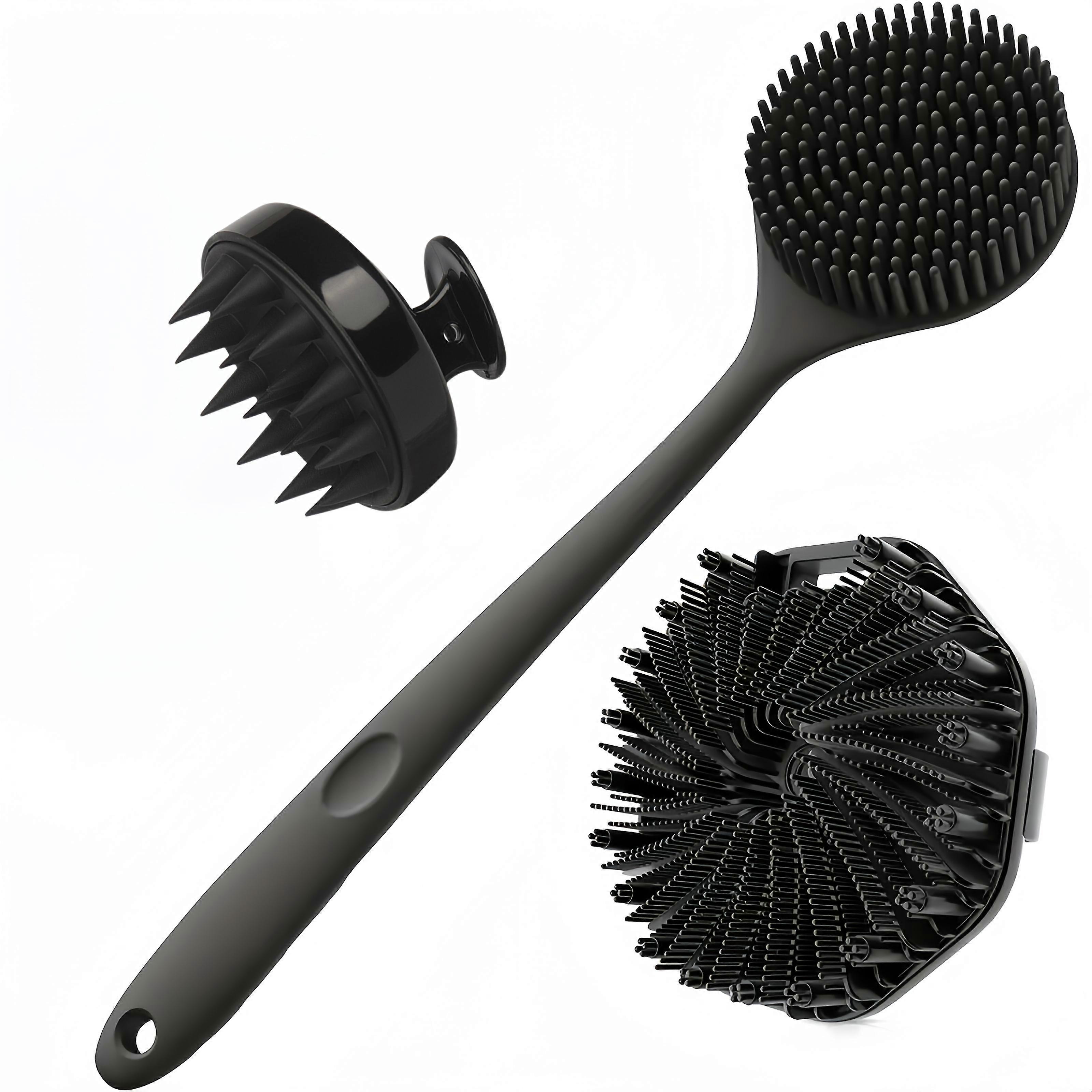 3PCS Silicone Bath Brush Set with Long Handle for Exfoliating Massage Body Scalp Back Deep Cleansing Soft Bristles Non-Slip Grip