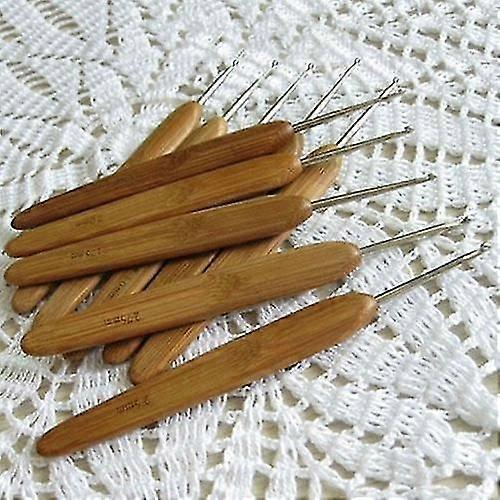SQLX New ZHOUBA 10 Pcs/Set Bamboo Handle Metal Crochet Hooks Knitting Needles Craft Hand Tool HK