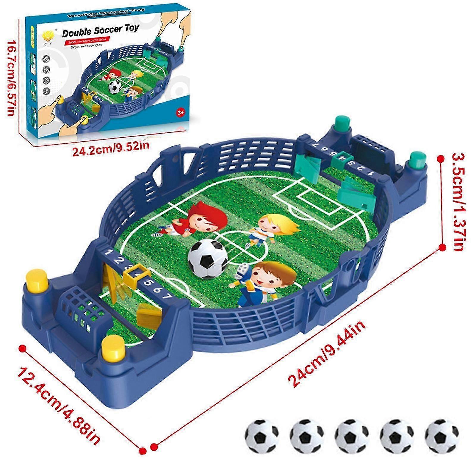 This tabletop football game is made of safe and durable ABS material, featuring smooth edges and surfaces. It is designed to improve hand-eye coordination, logical thinking, and reaction ability for kids and adults. It promotes parent-child bonding and enhances the sense of competition when played with friends. Suitable for holiday parties and family gatherings, it is also a great gift idea for birthdays, Christmas, or Halloween.Features:1. Educational Desktop Toys: Desktop football toys help children train hand-eye coordination and hands-on ability, develop logical thinking, exercise reaction ability, endurance and accuracy.2. Parent Child Relationship: You can play table football with your child. It can improve the relationship between the child and the parent by providing an opportunity to communicate and make the relationship between the parent and child more intimate.3. Interactive Toys: Kids can play this soccer game with their friends. Toys can help them live in harmony and enhance their sense of competition.4. Multipurpose: The tabletop pinballs toys are suitable for holiday parties and family gatherings to increase the fun. It is also an ideal gift for Christmas, birthday, or Halloween for kids, teenagers, and adults.5. Safety ABS Material: The tabletop football game is made of high-quality ABS material, which is environmentally friendly, BPA-free, safe and non-toxic. And the smooth edges and surfaces won't hurt your baby's hands.Specification:Material: Plastic Product Color: Gray, Orange, Green, BlueProduct Size: 24 x 12.4 x 3.5cm, 42 x 21 x 9cm, 38.5 x 18 x 8cm, 57 x 28 x 11.5cmPackage Weight: 130g, 260g, 340g, 610gPackage Included:1 Set x Football Table Interactive Game Toys
