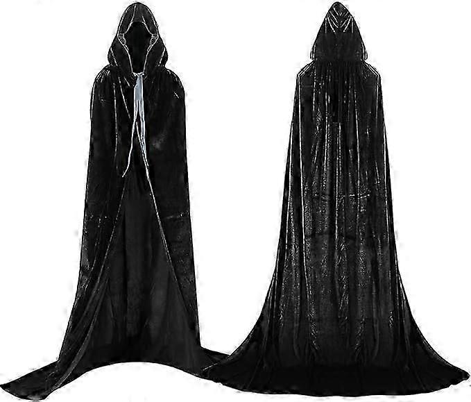 SQLX New Hooded Cloak Adult Long Cape Velvet Costume Black HK