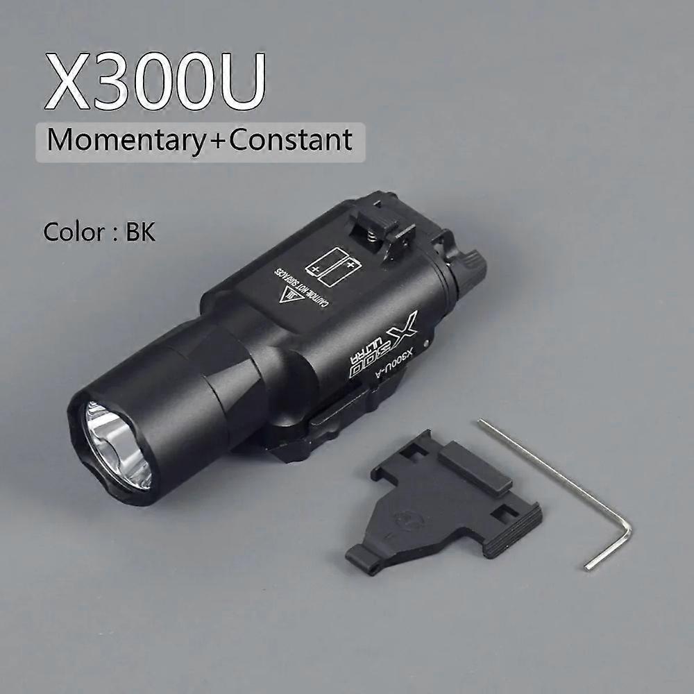 [DETAIL]<br>Why you choose it?<br>SUPER BRIGHT:Delivers up to 1000 Lumens and 150meters beam.<br>RECHARGEABLE:Charging directly by connecting the light with the included Type C USB cable,<br>EASY TO INSTALL: Manual quick attach and release mounting system, allowing you install and remove within half a second.<br>Product Features:<br>1.Using the international patent latest generation LED, life of 50000 hours<br>2.Max brightness 1000 lumens<br>3.Double button operation, high and low modes<br>4.The aluminium alloy body has excellent heat dissipation<br>5.Made of aviation aluminum alloy CNC finishing, and the surface is hard anodized<br>Package list:<br>1 x X300U/X300( Not Include Battery)<br>1 x Wrench<br>1 x Accessories<br><br>[ATTRIBUTES]<br>- High-concerned chemical: None<br>- Barcode: No<br>- Certification: CE<br>- High-concerned chemical: None<br>- Barcode: No<br>- Certification: CE<br>- Material: Metal<br>- Features: Diecast<br>- Type: Toy gun accessories<br>- Gender: Unisex<br>- Recommend Age: 14+y<br>- Origin: Mainland China<br>- material: aluminum alloy<br>- battery: 16340*2 or CR123A<not included><br>- fit: 20mm rail