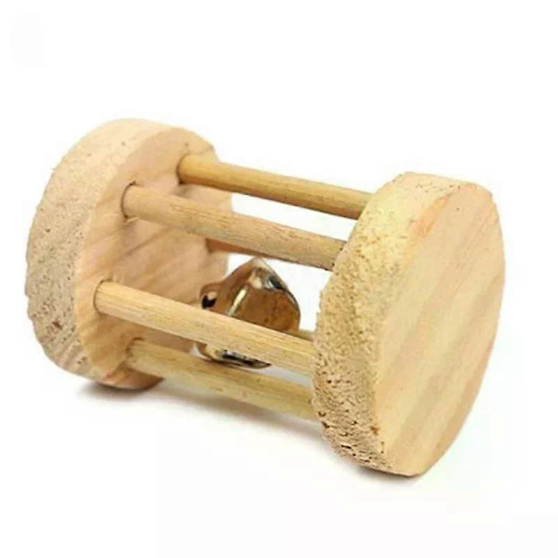 Natural Wood Chew Toys for Rodents Rabbit-Shaped Roller with Bell Guinea Pig/Rat Teeth Grinding & Play Activity