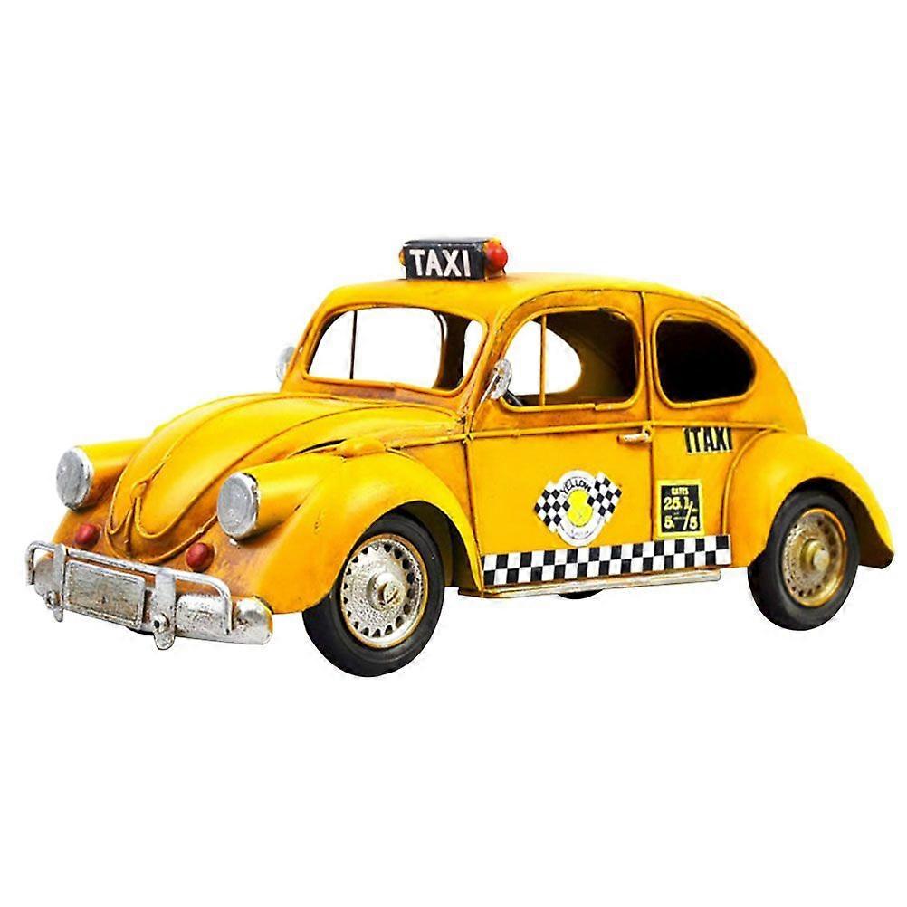 Vintage Tin Car Model Taxi Model Metal Handicraft Retro Iron Art Craft for Home Decor (Yellow)