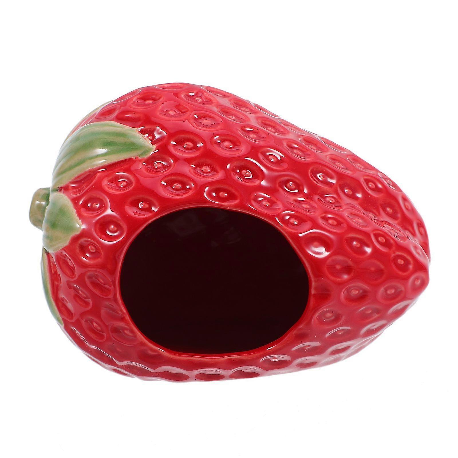 Strawberry Ceramic Hamster Hideout: Small Animal Habitat House Hideaway Cooling Nest Pet Summer Shelter Cave For Guinea Pigs