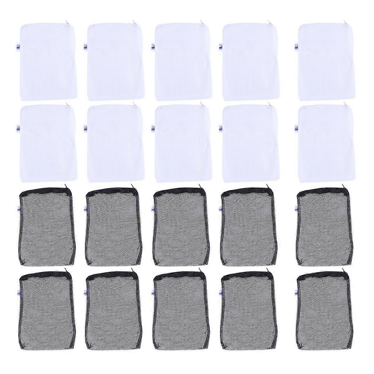 20pcs 15x20CM Professional Zipper Nylon Mesh Filter Media Bag for Aquarium Garden Pond (White and Black)