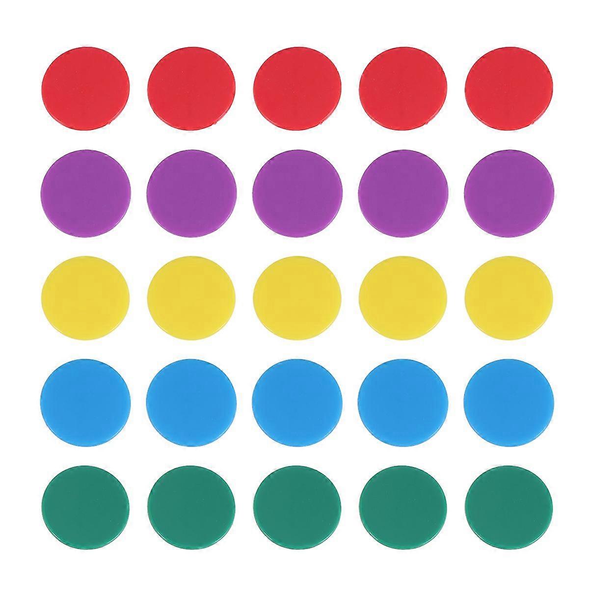 100pcs Plastic Learning Counters Disks 25mm Bingo Chip Counting Discs Markers (Red Green Yellow Purple and Lake Blue for Each 20pcs)