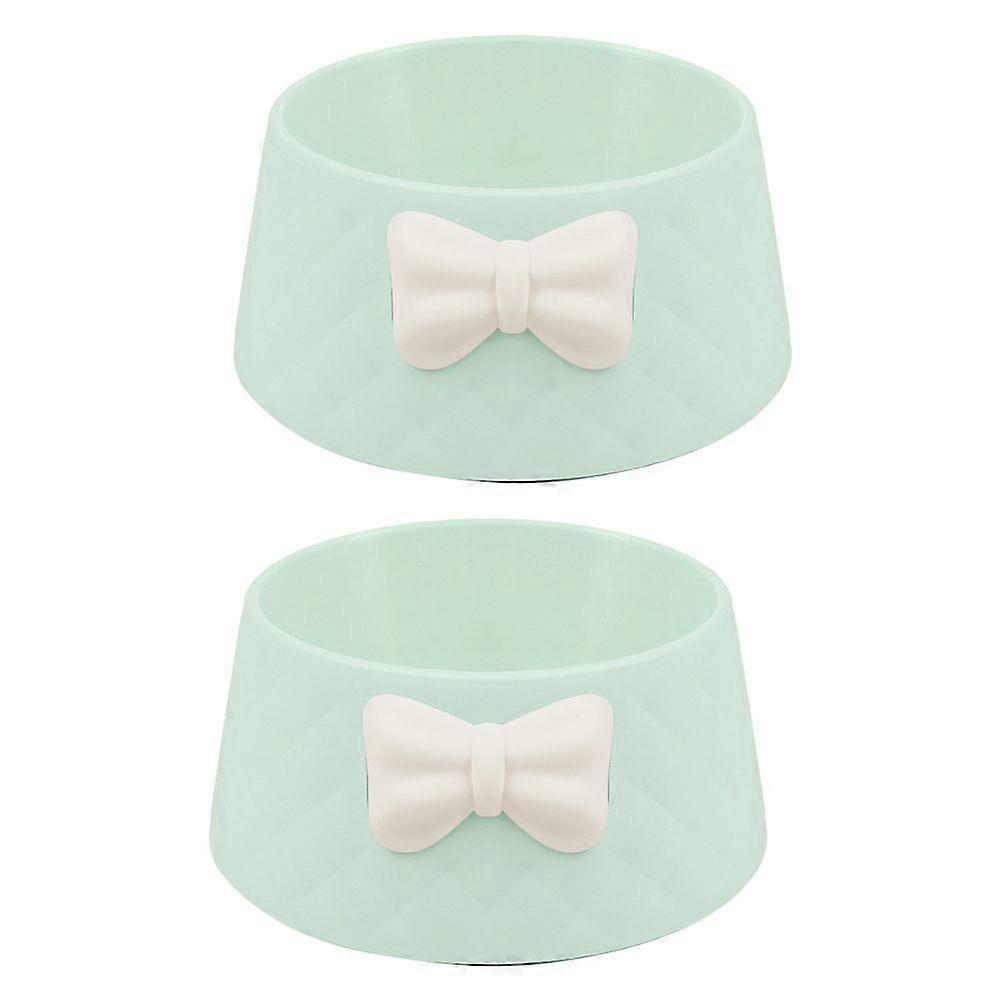 2pcs Round Bowl Pet Dog Cat Feeder Creative Food Dish Plastic Pet Feeding Bowl with A Bow-knot Decor(Green)