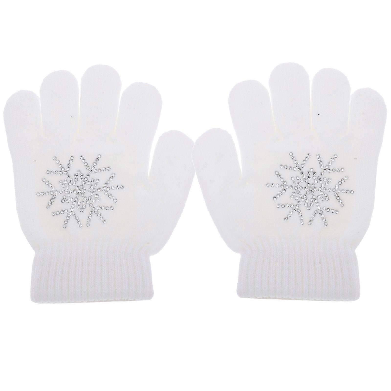1 Pair Ice Skating Gloves Warm Practice Mittens Winter Gripper Gloves Rhinestone Snowflake Gloves Anti Slip Gloves for Skating Sports Competition