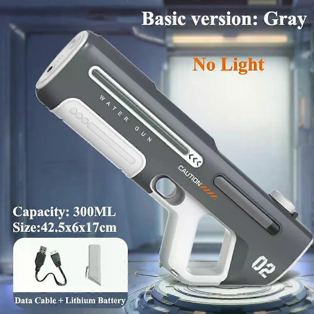 [DETAIL]<br>Notice:<br>1.  Each product has been tested and there is a probability of some water stains remaining inside and outside. This is a normal situation.<br>If you mind, please do not place an order to avoid causing a series of problemsre water guns, please note<br>Product Information<br>Name: Electric Water Guns Toys<br>Color:Gray/White<br>Age:8+ years old<br>Materials: Eco-friendly ABS plastic<br>FEATURES<br>Eco-friendly manual launch<br>The water toy is made of high-quality plastic, and the handle is anti-skid to grip.<br>Small size, large capacity, suitable for children and adults.<br>Enjoy family fun and interaction with friends or family at the beach,<br>Package included:<br>1 x water gun<br>1 x Battery<br>1 x charging cable<br><br>[ATTRIBUTES]<br>- High-concerned chemical: None<br>- Is Electric: Lithium Battery<br>- Certification: CE<br>- High-concerned chemical: None<br>- Is Electric: Lithium Battery<br>- Certification: CE<br>- Recommend Age: 14+y<br>- Origin: Mainland China