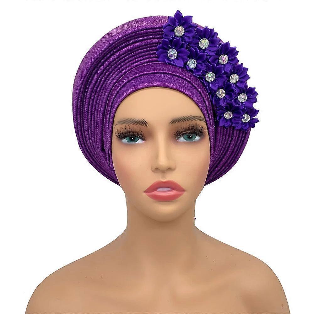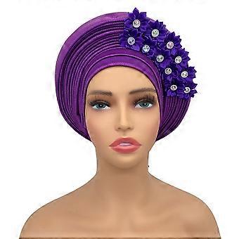 2024 African Auto Gele Headtie Turban With Flowers Wedding Party