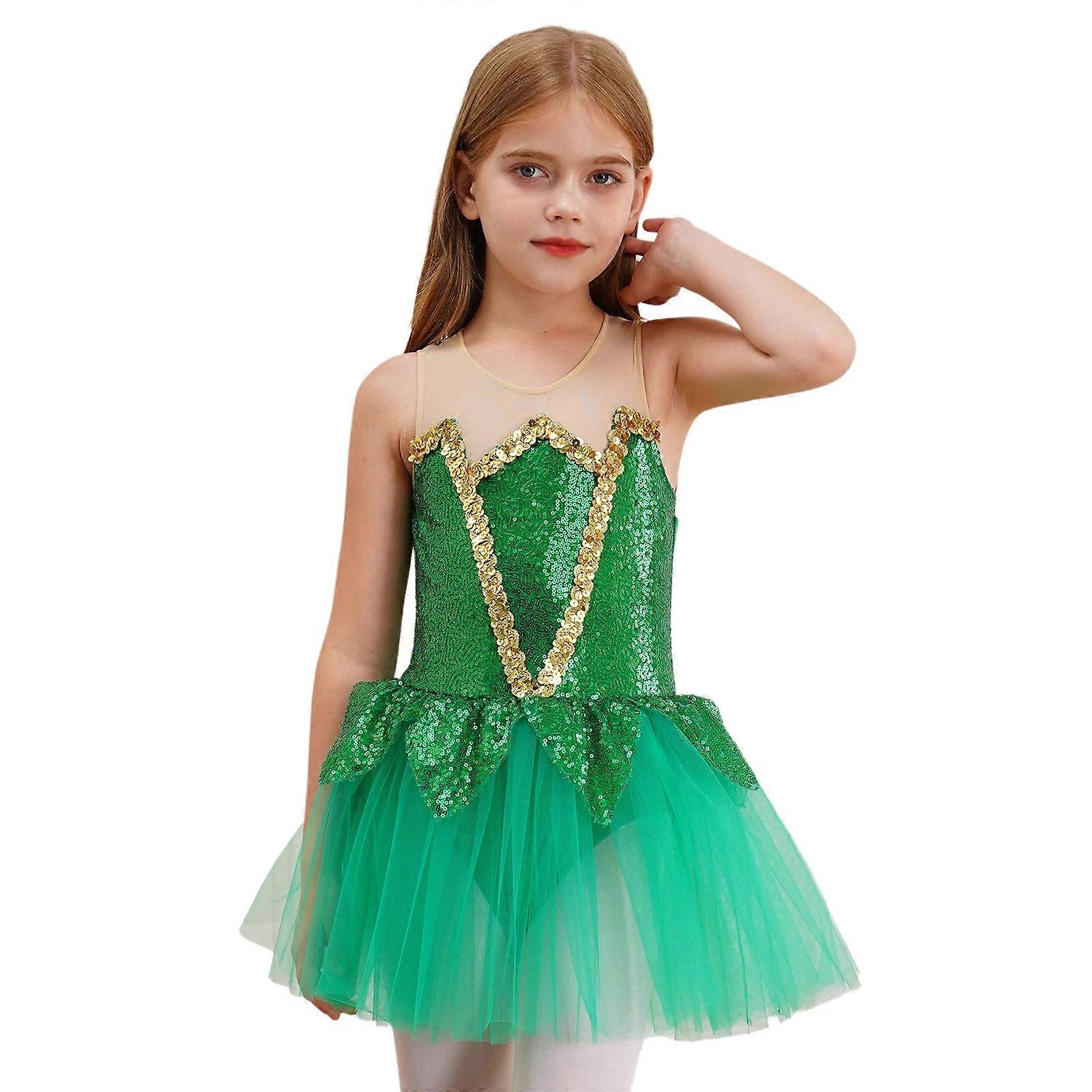 Kids Sequined Christmas Elf Mrs Santa Skating Dance Leotard Tutu Dress Ballet. Transform Your Little One into a Magical Fairy with This Enchanting Girls' Bodysuit. Crafted from High-quality Polyester, This Lightweight and Comfortable Costume Features Delicate Gauze Wings and Sparkling Sequins for a Truly Captivating Look. The One-piece Design is Perfect for a Variety of Occasions, from Halloween Parties to Fairy Tale Performances. The Bodysuit is Thoughtfully Designed with a Round Neck, Sleeveless Form, and a Convenient Keyhole Back with a Button Closure. The Attached Tutu Dress Includes a Built-in Underwear for Ease and Comfort. Accented with Golden Patchwork and a Sequined Petal Hem Around the Waist, This Costume Ensures Any Girl Looks Unique and Beautiful. Whether It's for an Elf Cosplay, Dress-up Event, or Theme Party, This Costume Promises to Bring Joy and Magic to Any Occasion. Summary of Features: - Material Composition: 80% Polyester, 15% Gauze, 5% Sequins - Design: One-piece Jumpsuit with Gauze Wings - Neckline: Round Neck - Sleeves: Sleeveless - Closure: Keyhole Back with Button - Decor: Shiny Sequins, Golden Patchwork, Sequined Petal Hem - Suitable For: Halloween, Cosplay, Fairy Role Play, Performances, and Themed Parties - Sizes Available: 6 to 16 (refer to Size Chart for Detailed Measurements) This Costume is a Delightful Choice for Anyone Seeking a Fairy Tale Transformation..