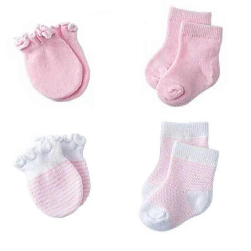 Cotton Baby Socks & Anti-scratch Mittens Set - 4 Pair Newborn Accessories
