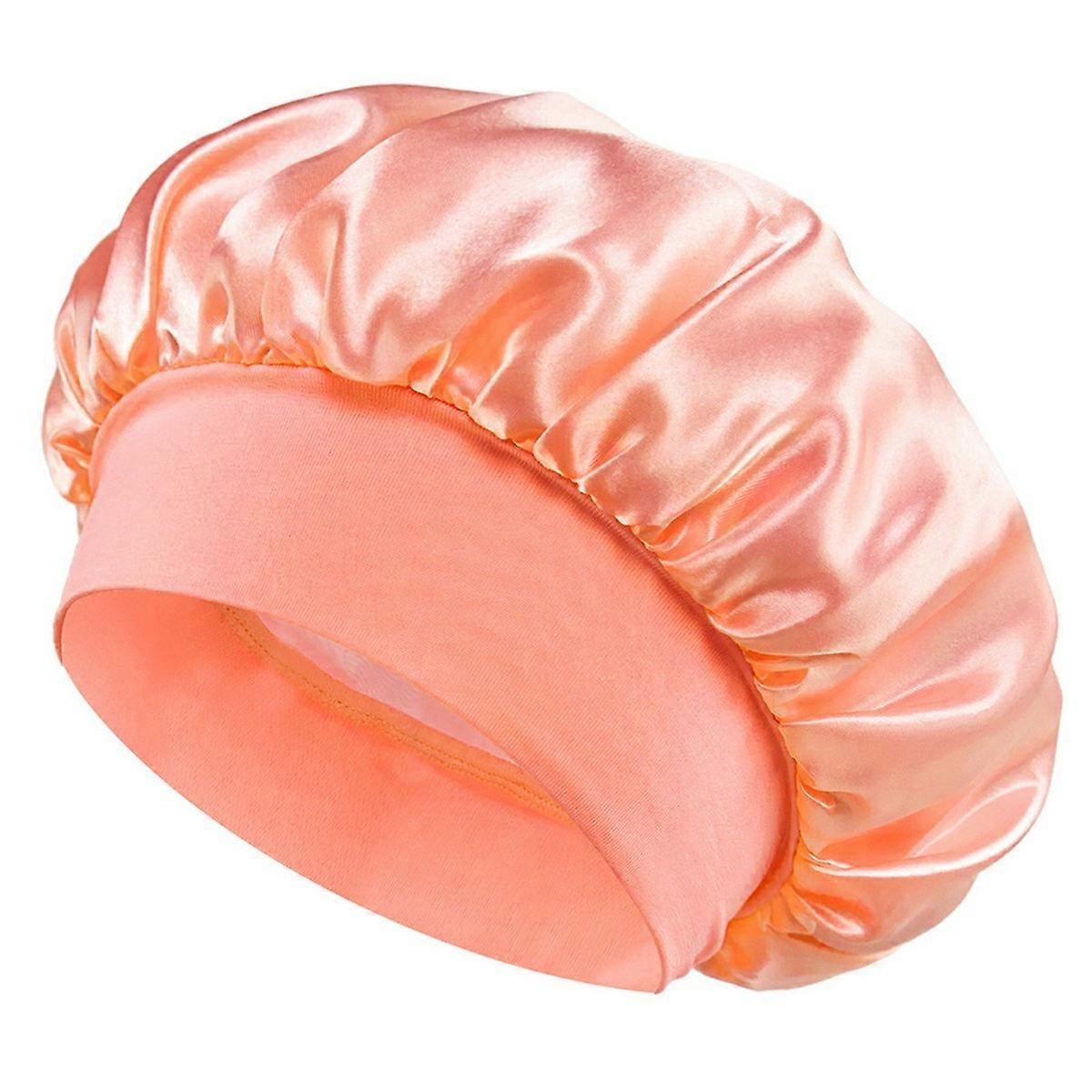 Wide Brim Elastic Sleep Cap for Women Satin Hair Bonnet Protective Headwear Soft Silky Night Sleepin