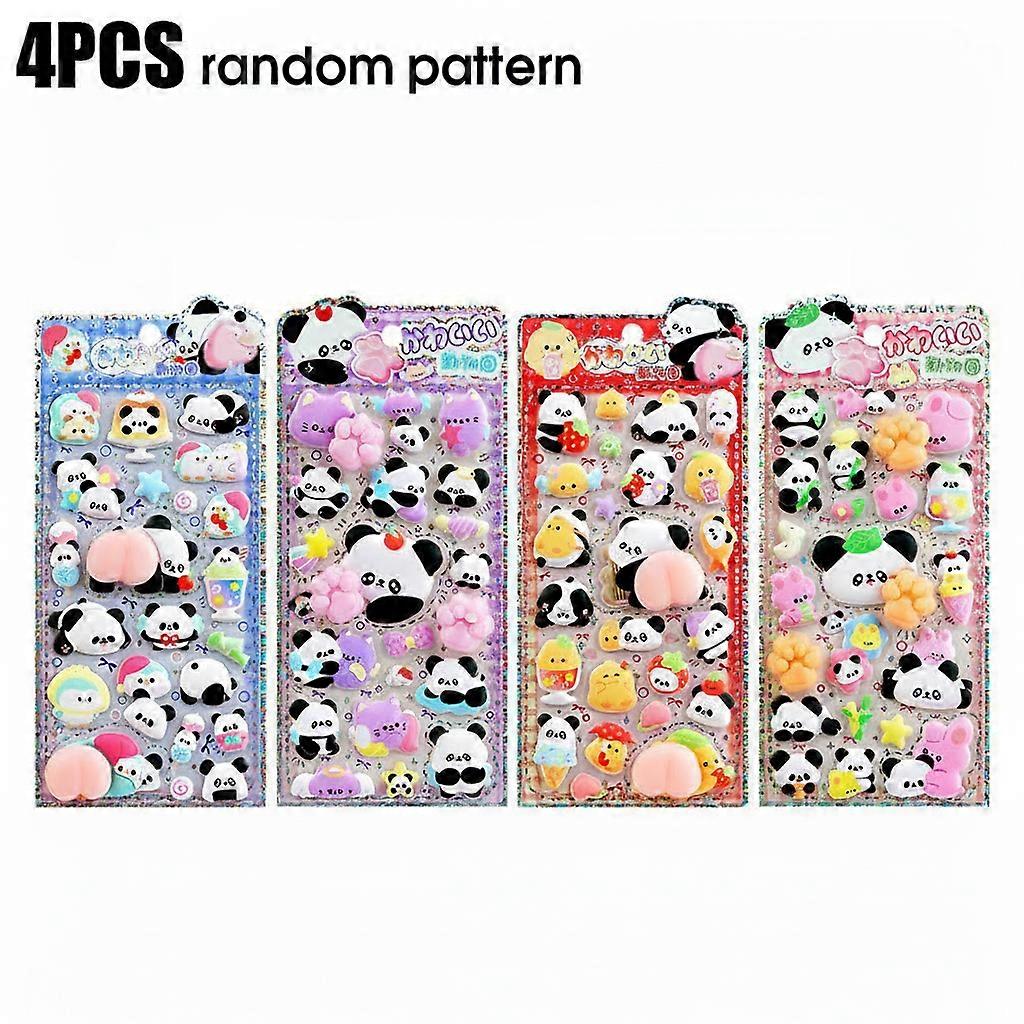 1/4PCS Cute Panda Stress Relief Stickers 3D Embossed Decor for Kids’ Crafts Gift Embellishment 3D Stickers For Hand Pencil Case
