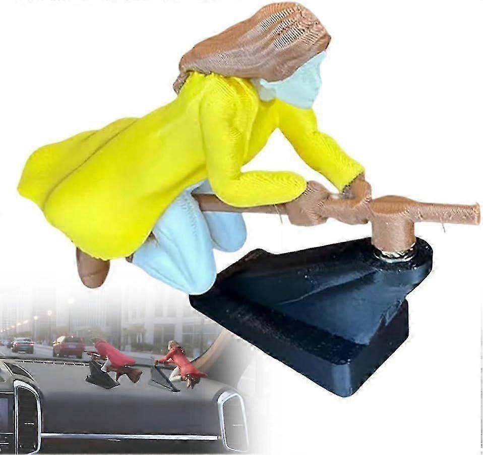 Witch and Wizard Broomstick Dashboard Drift Ornaments,Fantasy Car Decoration,Fun Drift & Turn Wizard Broomstick Decor,Mini Interactive Autom