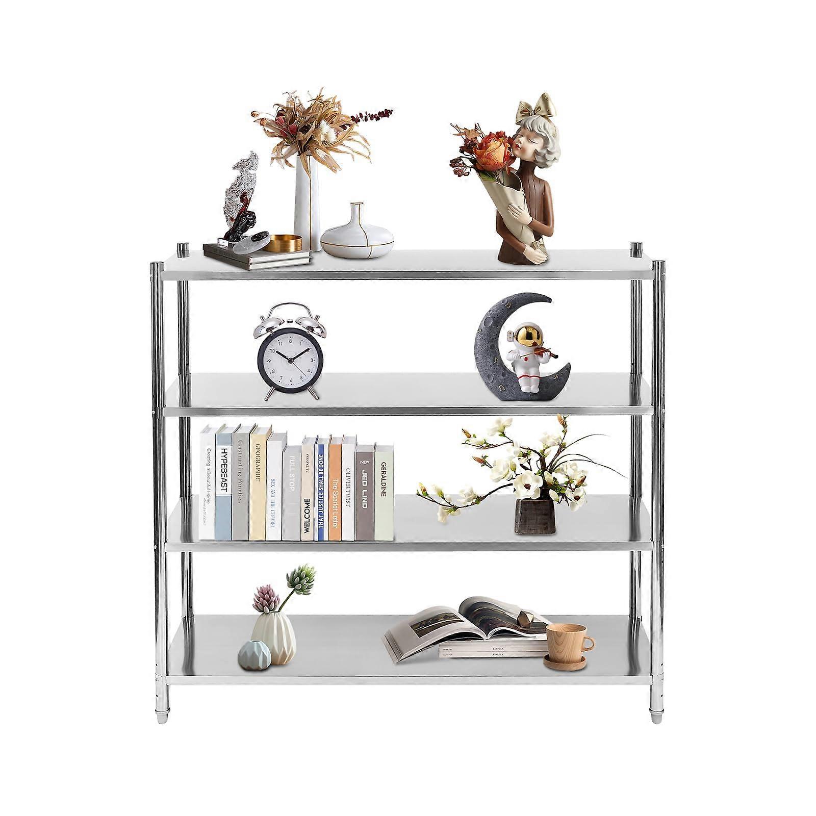 4 Tier Stainless Steel Shelving Unit, 330LBS Load, Adjustable Heavy Duty Storage Shelves for Garage Kitchen