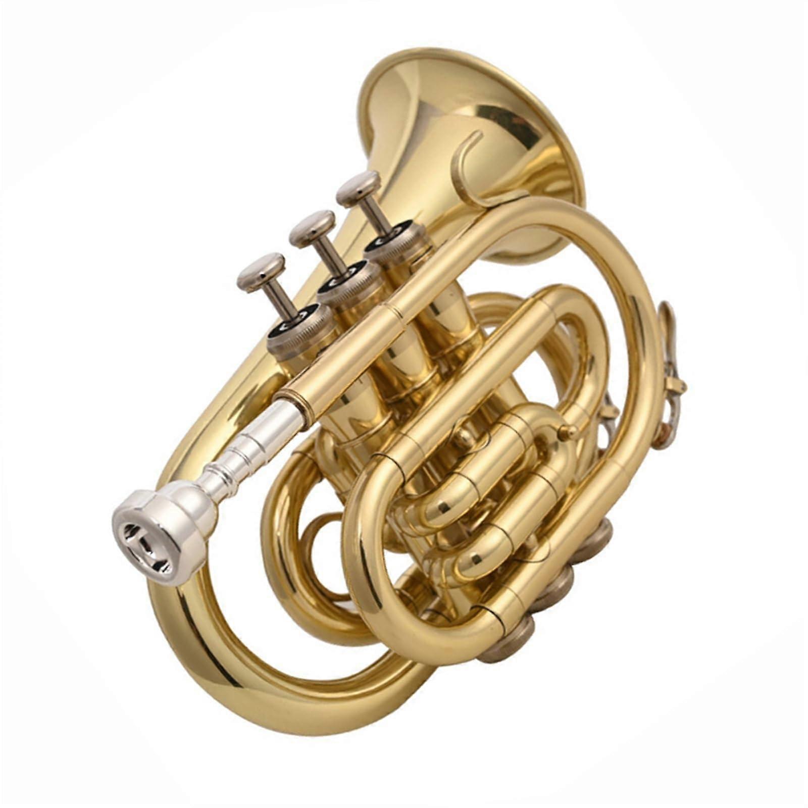 B Flat Pocket Trumpet Gold Brass Clear Bright Tone Smooth Valve Action for Beginner and Professional