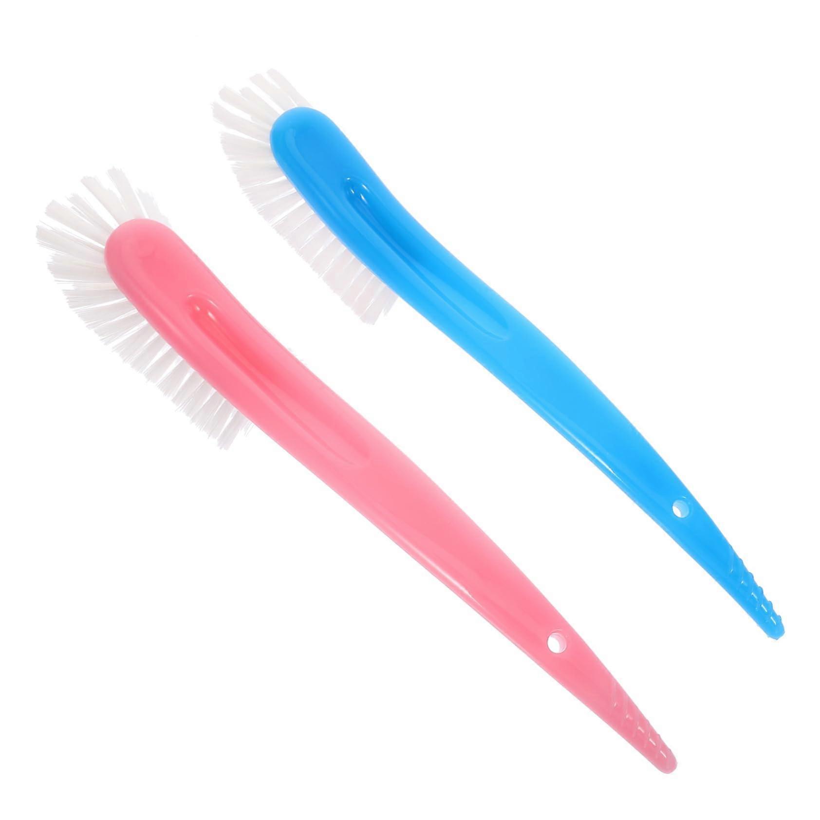2pcs Bottle Cleaning Brush Set with Flexible Head and Non‑Slip Handle for Deep Cleaning Baby Bottles and Cups Pink