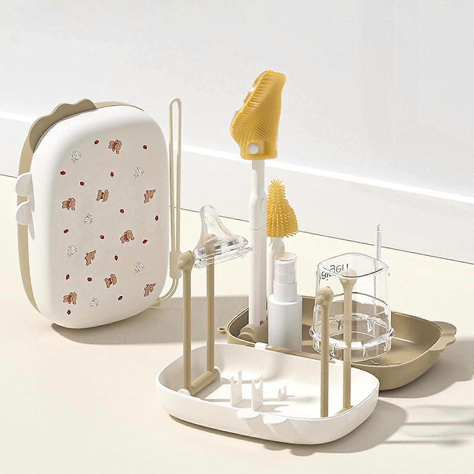 Baby Bottle Cleaning Kit 7in1 with Drying Rack, Nipple and Straw Brush, Soap Dispenser, Brown