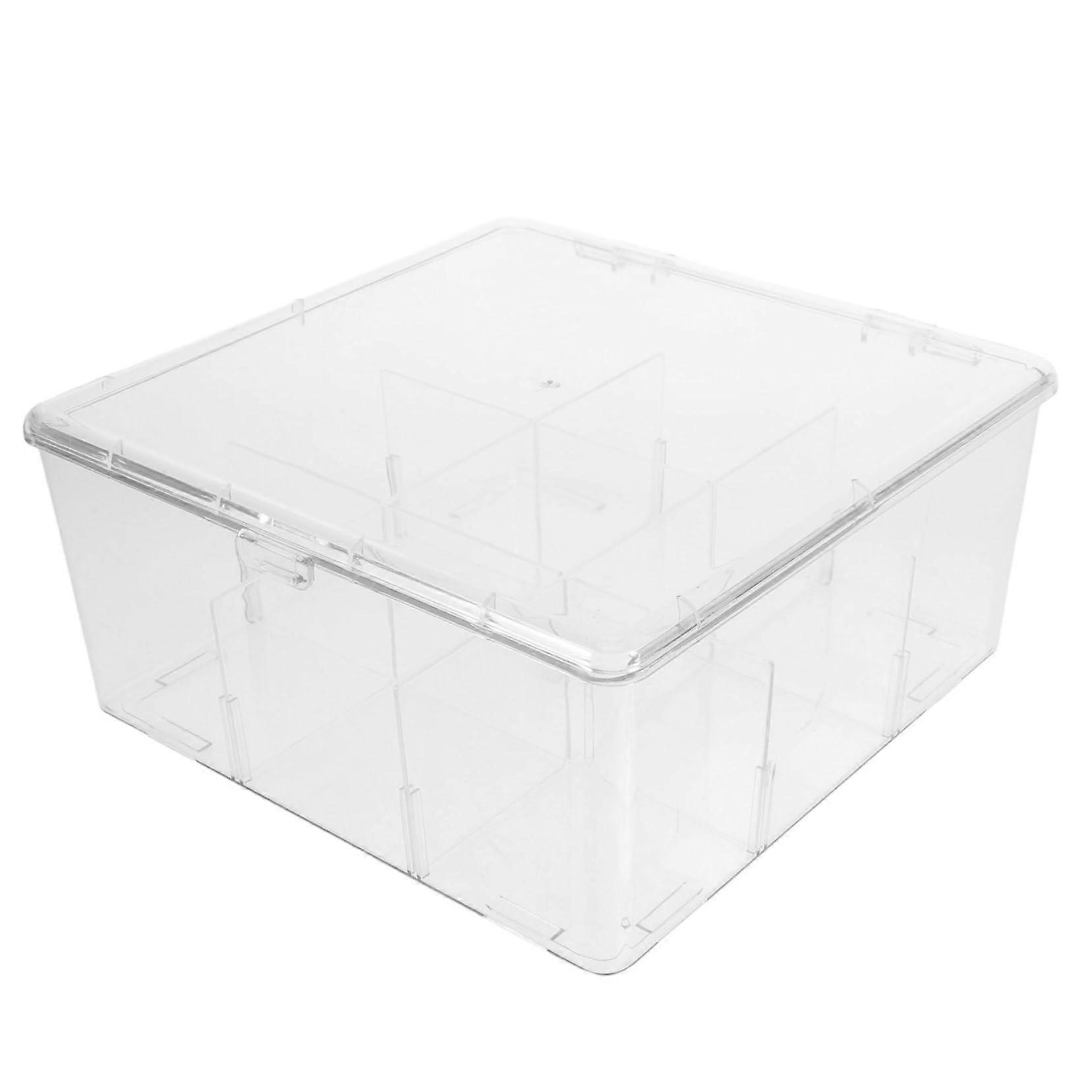 Acrylic Card Storage Box with Removable Compartments and Snap Closure for Home Office School