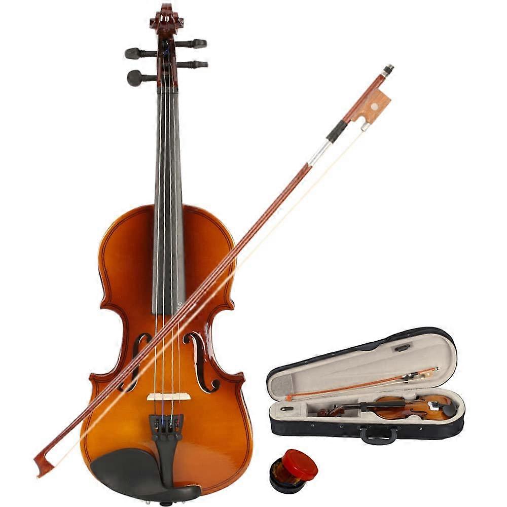 Product overview A complete 1/8 size acoustic violin pack designed for young beginners aged 4 to 5 years. The set includes a 1/8 size violin, a protective case with soft interior, a bow, and rosin. Natural color finish. Key benefits Proper size for young beginners: 1/8 size is suitable for most children aged 4 to 5, helping them hold and reach the fingerboard comfortably while learning basic techniques. Ready to play right away: the set includes violin, case, bow, and rosin so lessons can begin immediately without needing extra accessories. Durable tonewood construction: head, back, and sides are crafted from basswood to provide stable acoustic response and consistent sound for practice and early performance. Practical fittings and bow: the fingerboard, tailpiece, pegs, and chin rest are made from blacked wood for a stable playing surface, and the bow is made from arbor with white horse tail for traditional bow hair. Safe transport and storage: the included case features a very soft interior to protect the instrument from scratches and minor impacts during transport or storage. Materials and specifications Size: 1/8, recommended for children aged 4 to 5 years. Body wood: basswood for the head, back, and sides. Fittings: fingerboard, tailpiece, pegs, and chin rest made from blacked wood. Bow: arbor stick with white horse tail hair. Color: natural color. Included items: violin, case with soft interior, bow, and rosin. Performance and usability Designed for early learning: the 1/8 size reduces physical strain and supports proper hand position and left hand technique. Consistent playability: basswood body and stable fittings help maintain tuning and intonation suitable for lessons and practice. Portable and protected: the softlined case keeps the violin secure when moving between home, lessons, and rehearsals. Use scenarios First lessons at home: a parent or teacher can use this complete set to start structured practice sessions without buying additional accessories. Classroom or group instruction: small size and included case make it convenient for children to bring the instrument to school or group lessons. Recitals and practice outside the home: the protective case and readytoplay setup allow young students to transport the instrument safely for performances or practice at a friend or family member s house. What to expect in the package 1/8 size natural acoustic violin with basswood body Bow made from arbor with white horse tail hair Protective case with very soft interior Rosin for bowing This violin pack is intended as an entry level instrument for children beginning violin study. It provides a complete, compact set that supports early learning, convenient transport, and basic performance needs.