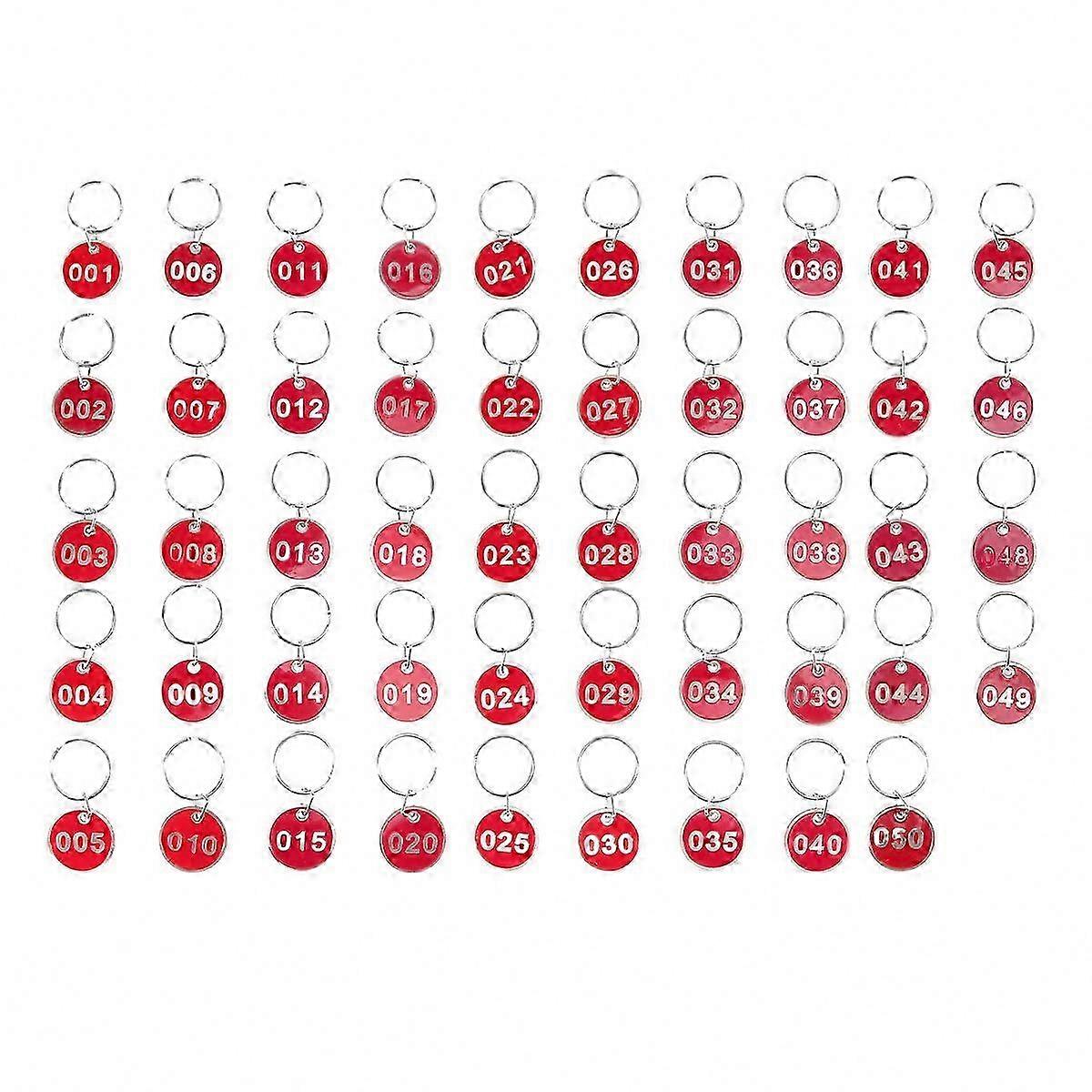 50pcs Metal Storage Tags, Aluminum Alloy Luggage ID Labels with Key Rings, Numbered 1-50, Red