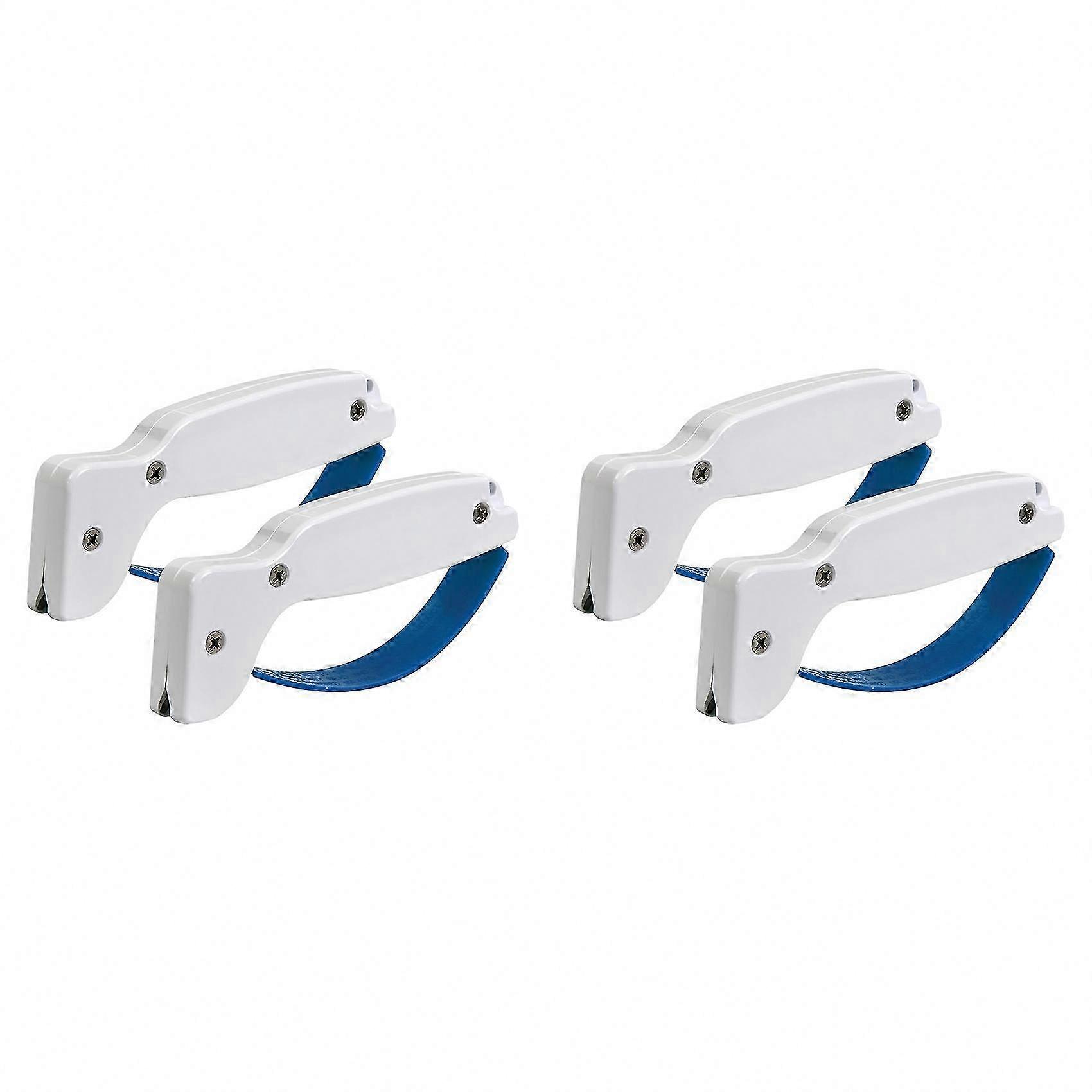 RAPID SHARPENING RESULTS: Achieve a sharp edge quickly with the knife sharpener. Designed for efficiency, this tool restores and sharpens various blades, ensuring optimal performance with minimal effort. MULTI-BLADE COMPATIBILITY: Works with chef’s knives, paring knives, serrated blades, and cleavers. Effectively sharpens dull blades and maintains sharp edges. ADVANCED CARBIDE TECHNOLOGY: Constructed with tungsten carbide for precision and durability. Blades are reversible to extend lifespan. Color: White & Blue Material: Tungsten steel + plastic Package Contents: 4 x Knife Sharpener