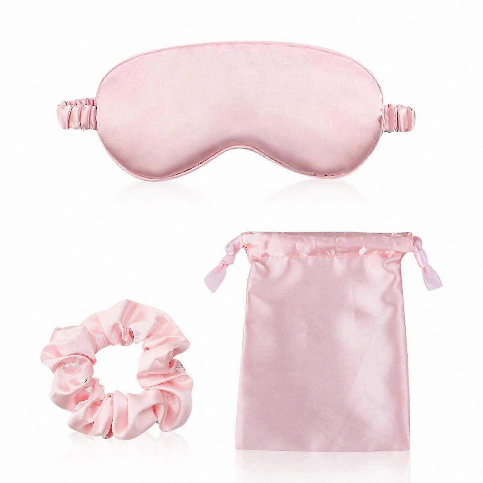 Silk Sleep Mask Set, 3 Pcs Super Soft Eye Masks with Travel Pouch & Hair Scrunchie for Women & Girls (Pink)