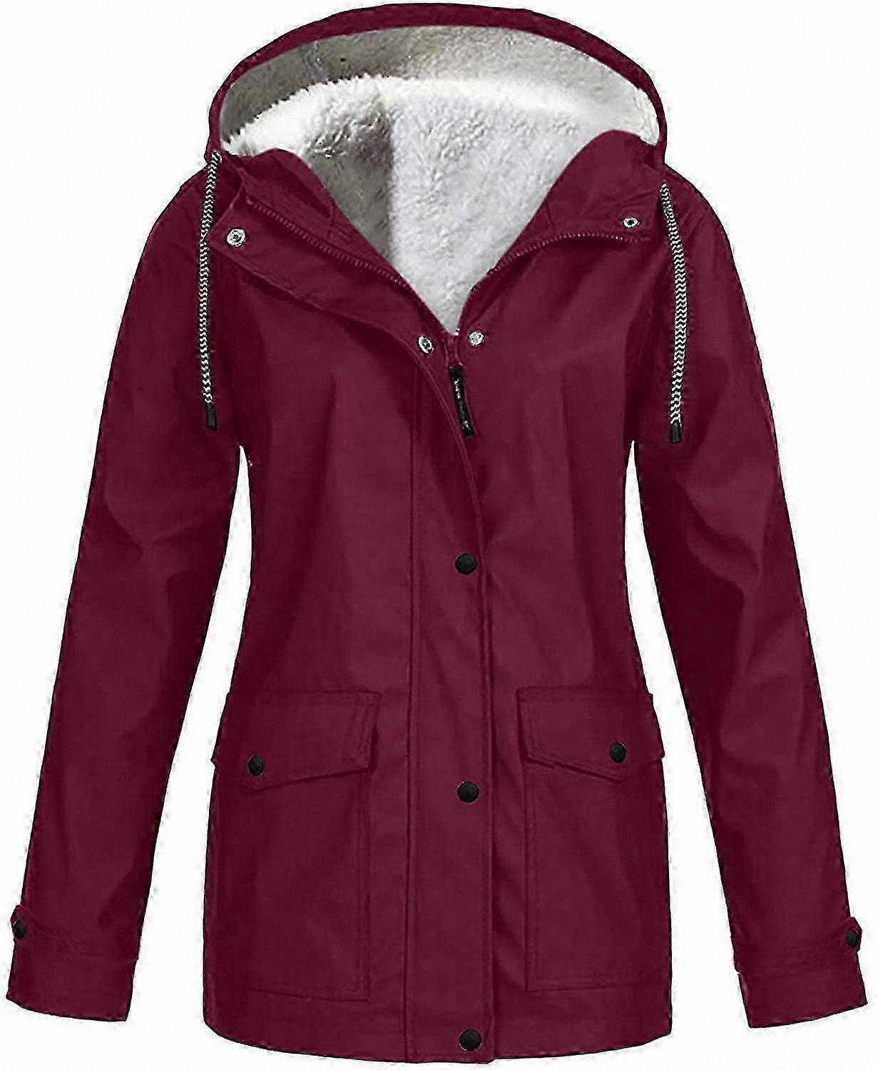 Women's Winter Waterproof Hooded Jacket with Fleece Lining for Outdoor Snow and Rain Protection in Solid Color