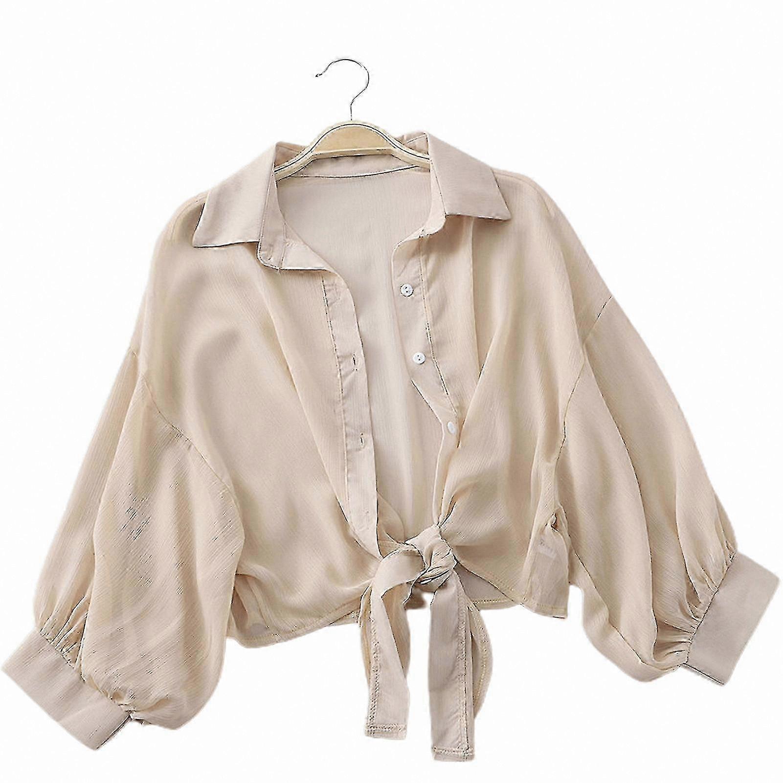Summer Chiffon Blouse for Women - Lightweight Half Sleeve Tops with Front Tie-Up Detail