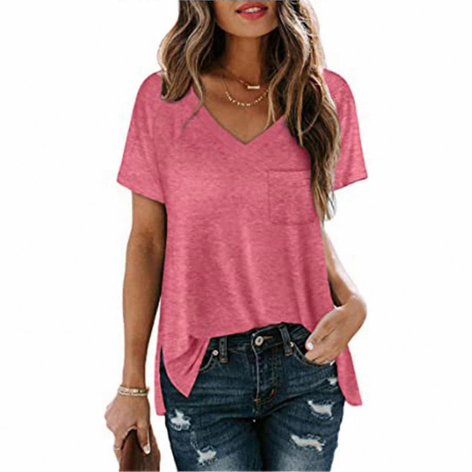 V Neck Short Sleeve T-Shirt for Women Casual Loose Fit Summer Wear