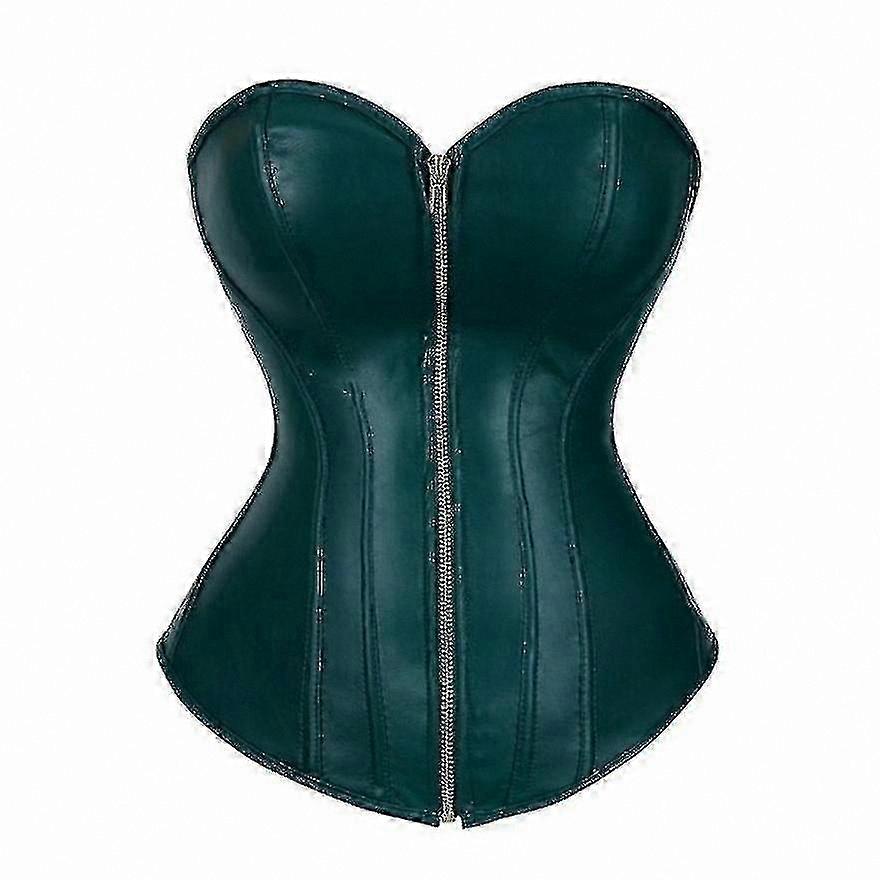 Women's Vintage Faux Leather Corset Top Strapless Zippered Busty Lingerie Nightclub Sexy Overbust Waist Cincher Retro Style