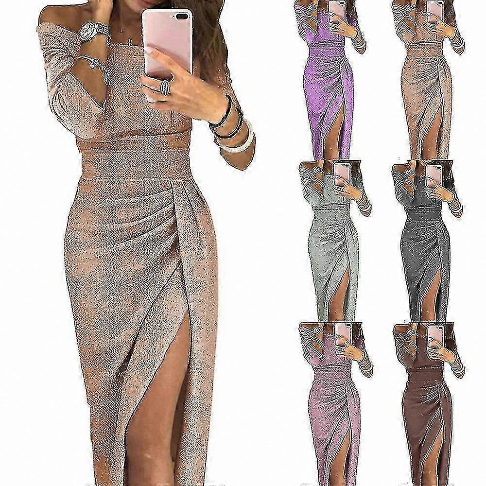 Women's Elegant Off-Shoulder Maxi Dress with High Slit for Formal Events and Parties Plus Size Available