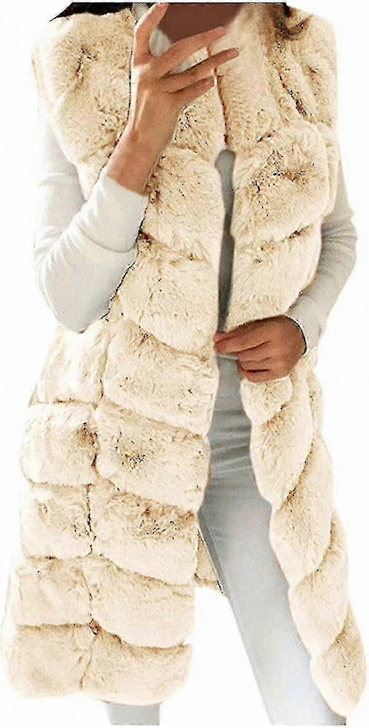 Women's Winter Warm Sleeveless Long Vest Fuzzy Plush Open Front Waistcoat Outerwear Gilet Coats Faux Fur Jacket Tw