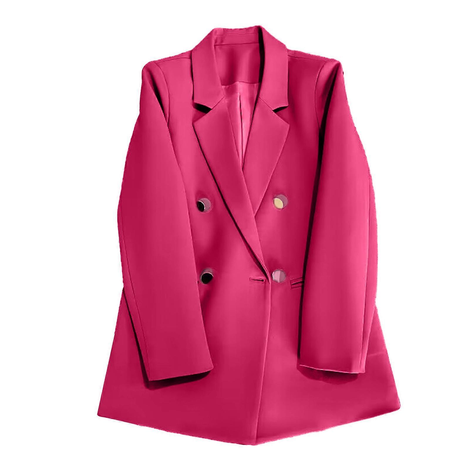 Women Suit Coat Lapel Long Sleeve Double Placket Suit Jacket with Pockets Solid Color Loose Fit