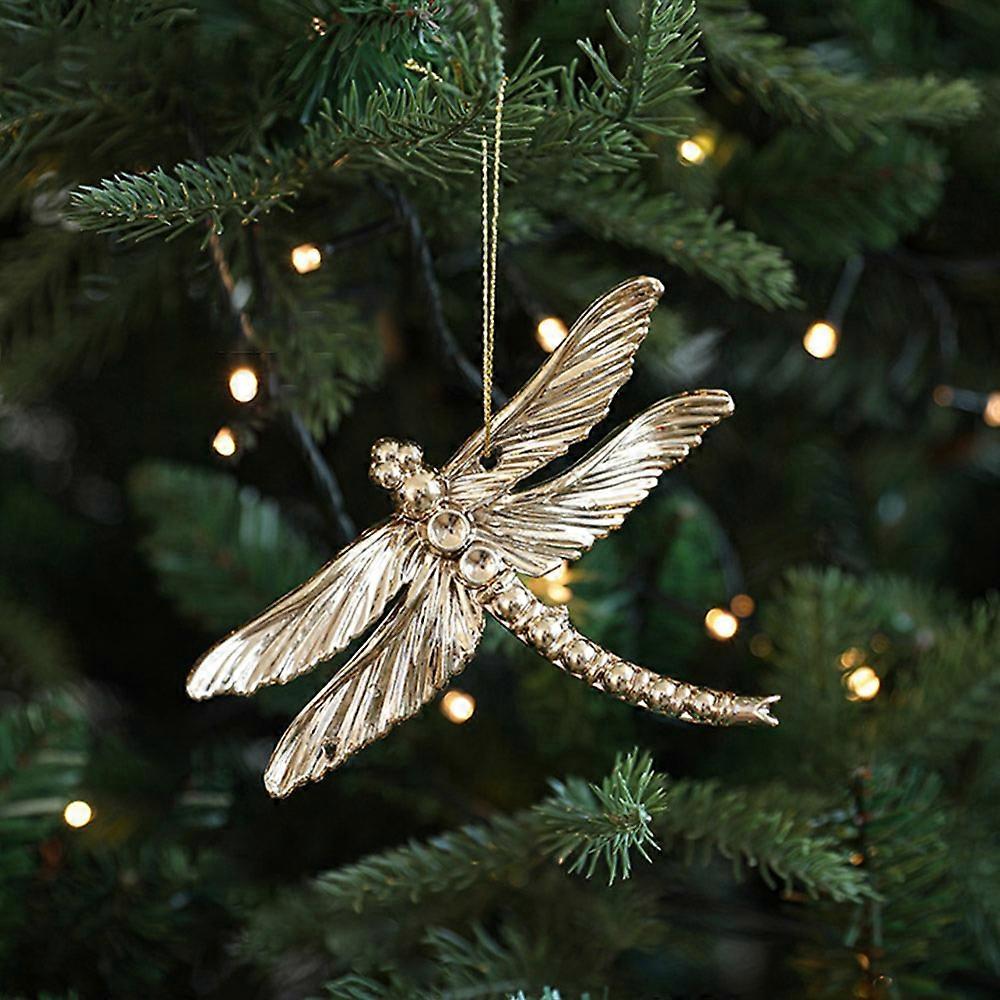 Gold Christmas Hanging Decoration Plastic Angel Snowflake Xmas Ornament Ball Butterfly Dragonfly Party Supplies Xmas Baubles