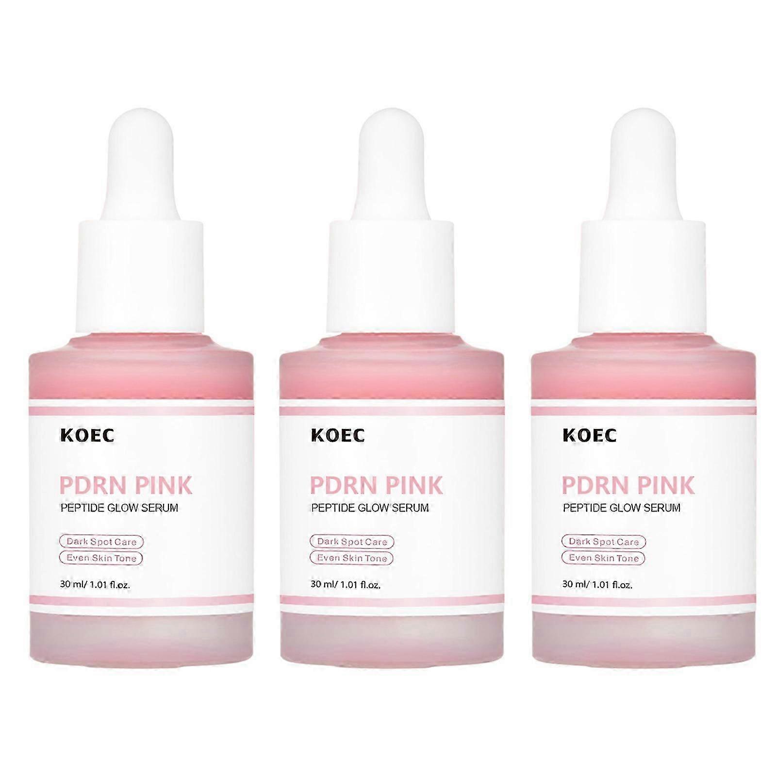 FeaturesKOREAN GLASS GLOWING SKIN: This pink glowing serum targets dull skin and boosts elasticity, helping to prevent future breakouts while enhancing the skin's glowing and resilience.SALMON-DNA PDRN: PDRN is a form of DNA-extracted from salmon. It stimulates skin renewal and repair, giving your skin a clearer, more luminous-complexion. It promotes a more even skin tones and a natural glowing by improving skin health.KEY INGREDIENTS: Containing Rose PDRN, five types of peptide complex, niacinamide, adenosine, and Ocimum Sanctums leaf extract, this formulas provides effective care for uneven skin tones and elasticity.LONG LASTING HYDRATION: Strengthens the skin's barriers function, enhancing its resistance to external aggressors and pollutants. It provides deep hydration and smoothing skin texture.MILD FORMULAS LIGHT TEXTURE: The formulas is mild and gentle for all skin types—gentle enough to be used daily. Dermatologist-tested, low-irritating, and free from gluten and artificial colorNotice:1.Actual color may be slightly different from the image due to different light effect2.Please allow 1-3cm deviation due to manual measurementNet Content: 30mlPackage List:1/2/3pcs PDRN Pink Peptide Serum