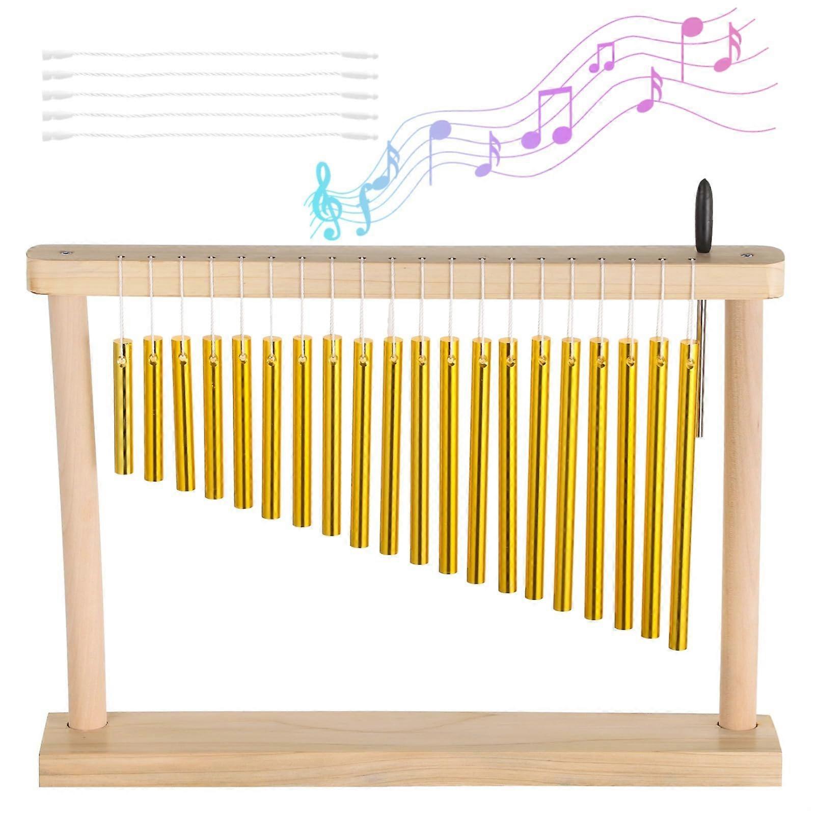 20Note Brass Chime Percussion Instrument with Mallet, Wooden Tabletop for Relaxation