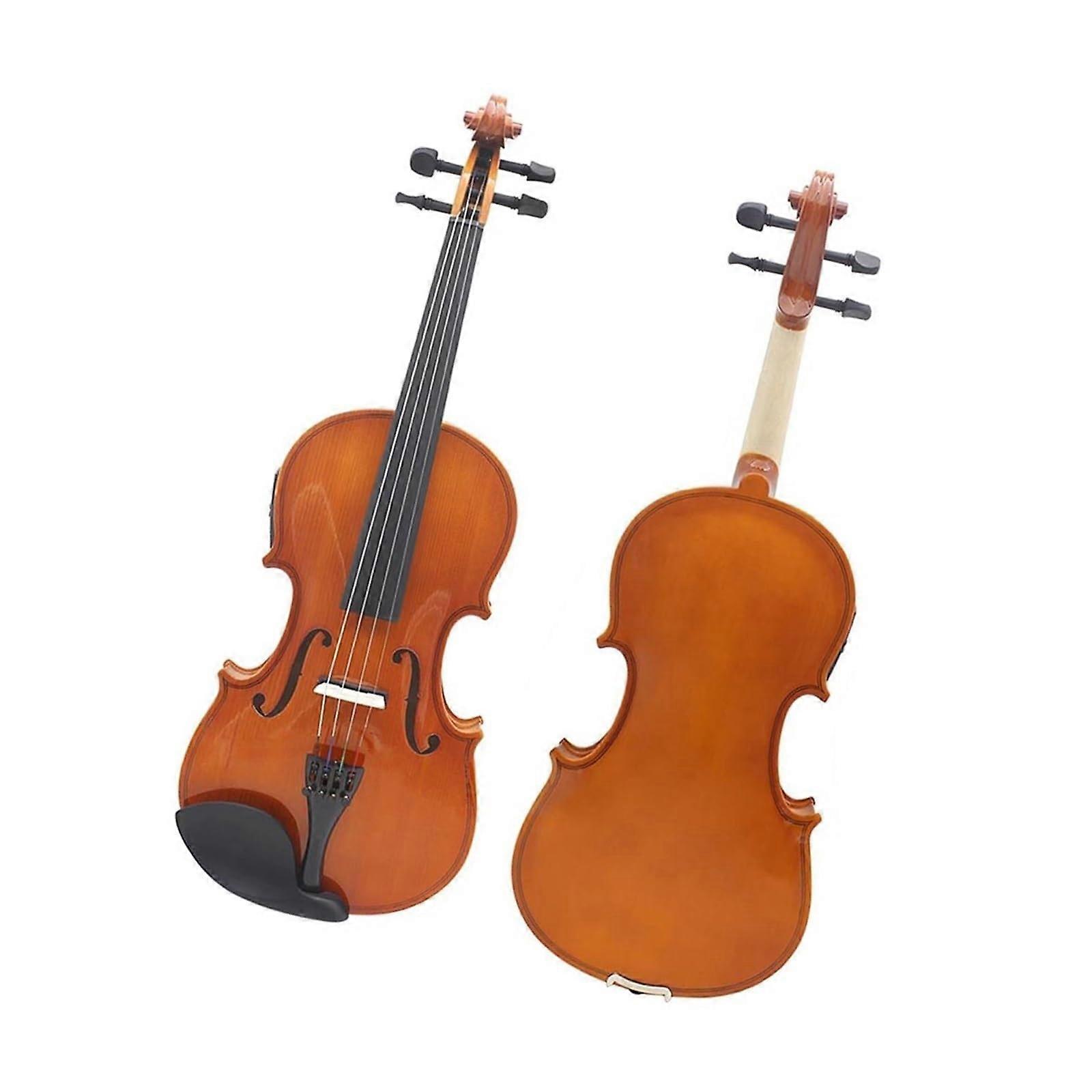 4/4 Electric Violin — Fullsize, professionalquality tone and reliable build Why choose this violin Produces a warm, round tone that closely matches the natural sound of an acoustic instrument, making it suitable for practice, recording, and live performance. Full 4/4 size fits adult players and advanced students who require standard scale and playability. Solid construction and quality materials deliver stable tuning, consistent resonance, and durable performance. Key features Full 4/4 electric violin with a varnished surface for a refined appearance and added protection. Hand solid wood construction with an exquisite solid wood face board for natural resonance. Maple back board for balanced projection and structural strength. Fretboard made from ebony for smooth finger action and longlasting wear resistance. Supplied with strings and a carefully selected bow to produce clear, pleasant tone right out of the case. Includes a carrying case for safe transport and convenient storage. Practical benefits Improved sound quality: solid wood and maple back combine to produce rich harmonic content and a round, even tone. Reliable playability: ebony fretboard and fullsize setup provide familiar feel and accurate response for experienced players. Portability and protection: included case keeps the instrument secure during travel and reduces setup time for gigs. Suggested uses Practice and study at home or in a studio, where consistent tone and durability matter. Small performances or recording sessions that require the tonal character of a fuller violin with the control of an electric instrument. Travel and teaching: easy to transport in the included case for lessons, rehearsals, or ontheroad use. Specifications Size: 4/4 (full) Type: Electric violin Surface: Varnished : Hand solid wood face board Back: Maple back board Fretboard: Ebony Accessories: Strings, selected bow, carrying case This electric violin balances traditional materials and modern convenience, offering reliable tone, comfortable playability, and readytogo portability for players at a fullsize standard.